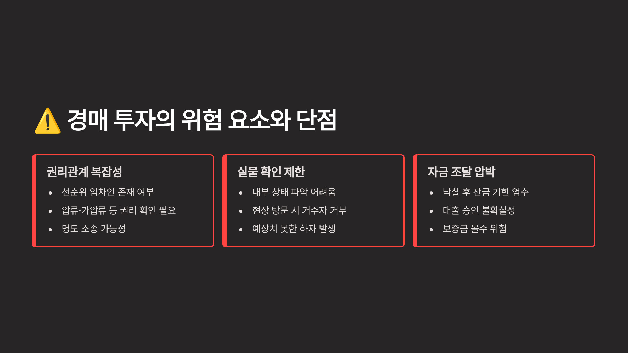 ⚠️ 경매 투자의 위험 요소와 단점