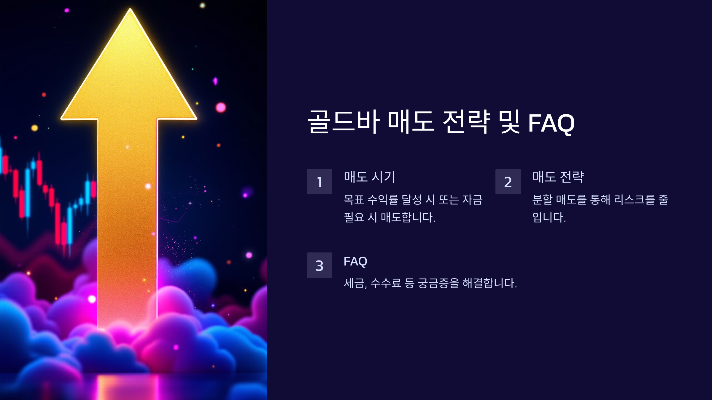 ✔️ 분할 매도 전략 – 한 번에 팔지 않고, 가격이 오를 때마다 분할 매도하여 수익을 극대화하는 방법이에요.