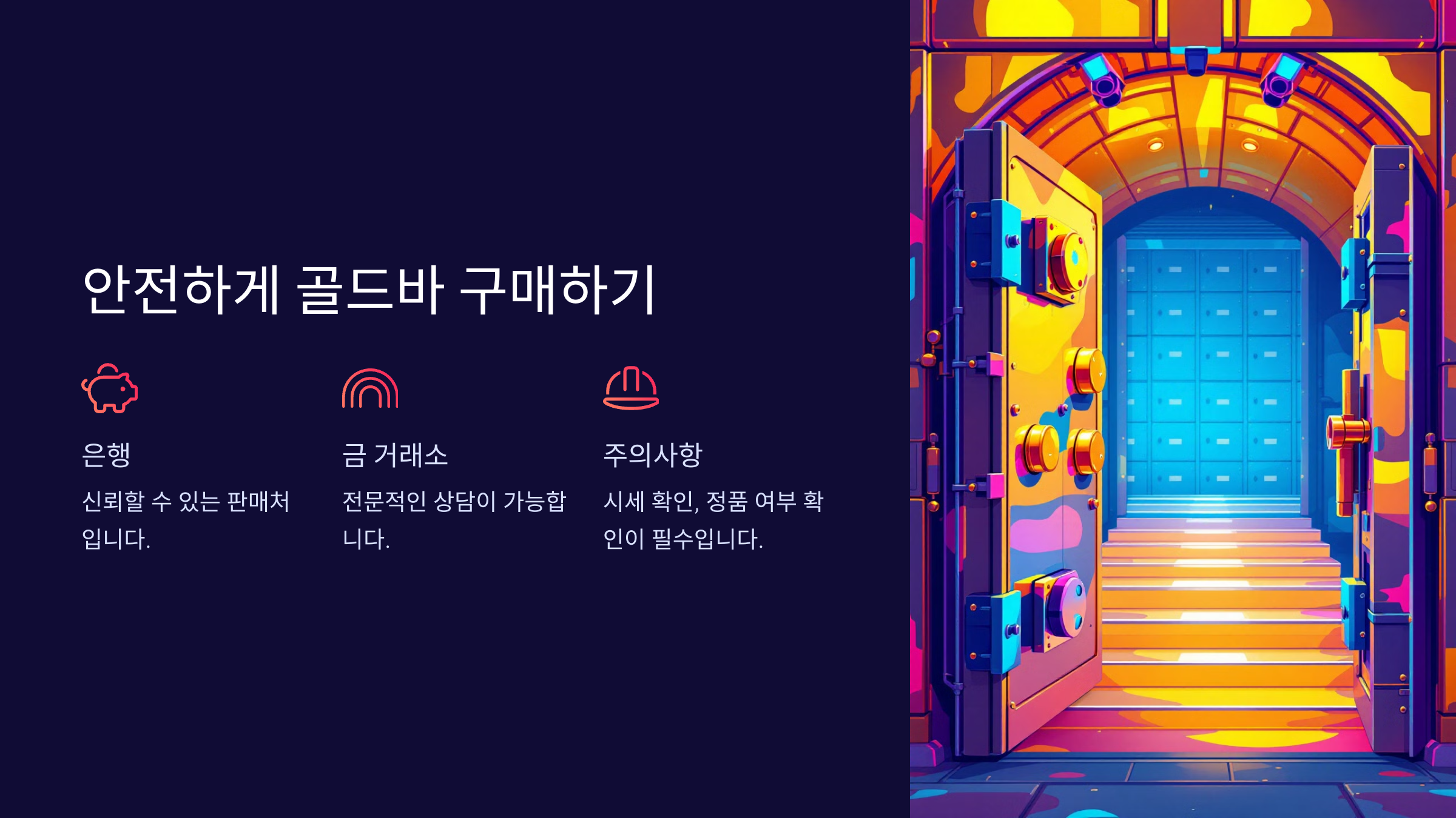 골드바 보관은 안전이 최우선이에요. 개인이 직접 보관할 경우 도난 위험을 줄이기 위해 비밀 유지가 중요하고, 은행이나 거래소 서비스를 이용하면 보관료가 발생하지만 안전성이 높아져요. 본인의 투자 목적과 보관 환경에 맞게 선택하면 돼요! 😊