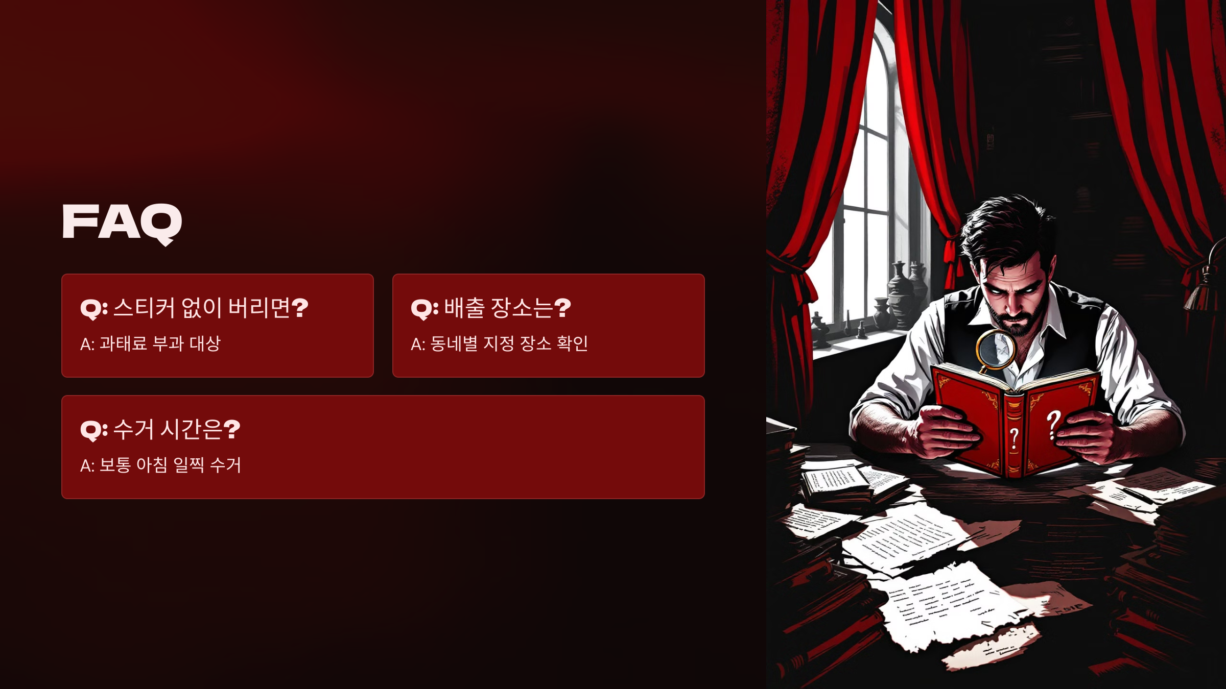 A6. 각 지자체의 공식 홈페이지나 주민센터에서 품목별 수수료를 확인할 수 있다. 지역마다 요금이 다를 수 있으므로 배출 전 반드시 확인해야 한다.