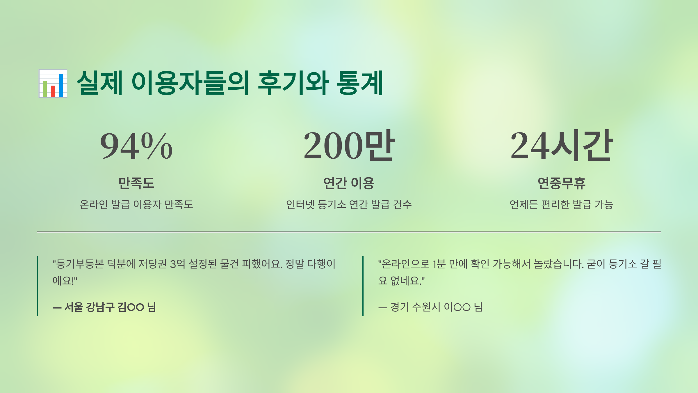 실제 이용자들의 만족도도 매우 높아요. 특히 24시간 이용 가능하다는 점과 발급 속도가 빠르다는 점에서 높은 평가를 받고 있어요. 부동산 중개사분들은 하루에도 수십 건씩 발급받으시는데, 업무 효율성이 크게 높아졌다고 해요.