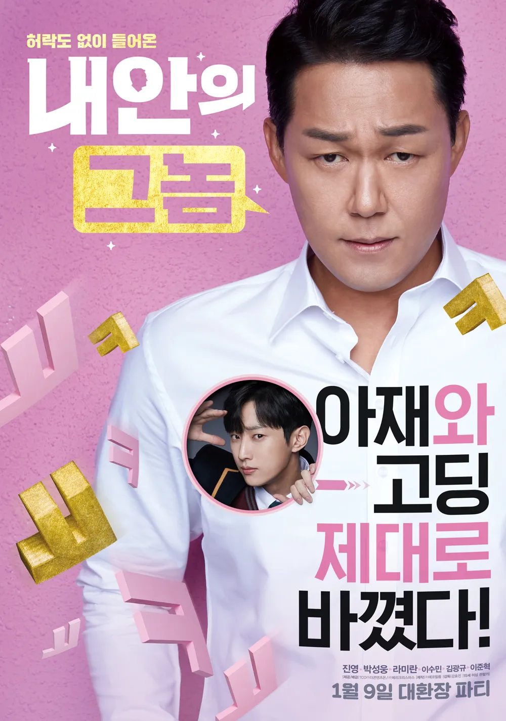 내 안의 그놈은 배우들의 열연이 빛나는 작품입니다. 진영은 어른의 몸에 갇힌 고등학생이라는 독특한 설정을 자연스럽고 유쾌하게 표현하며, 관객들에게 큰 웃음을 선사합니다. 그의 몸짓과 표정 연기는 고등학생 특유의 에너지를 유지하면서도, 상황에 따라 어른스러운 면모를 보여주는 균형을 잘 맞춥니다. 박성웅은 이 영화의 코믹 중심축입니다. 그는 평소 강렬한 악역 이미지와는 달리, 청소년의 몸에 갇힌 중년 남성의 어리둥절한 모습을 능청스럽게 연기하며 코미디 연기의 진수를 보여줍니다. 특히, 고등학생들 사이에서 우스꽝스러운 상황에 처하는 장면들은 관객들에게 웃음과 공감을 동시에 제공합니다. 또한 라미란은 동현의 엄마로 등장하며, 영화에 따뜻한 가족적 분위기를 더합니다. 그녀 특유의 유머와 인간적인 연기는 영화의 감동적인 순간을 더욱 빛나게 합니다.