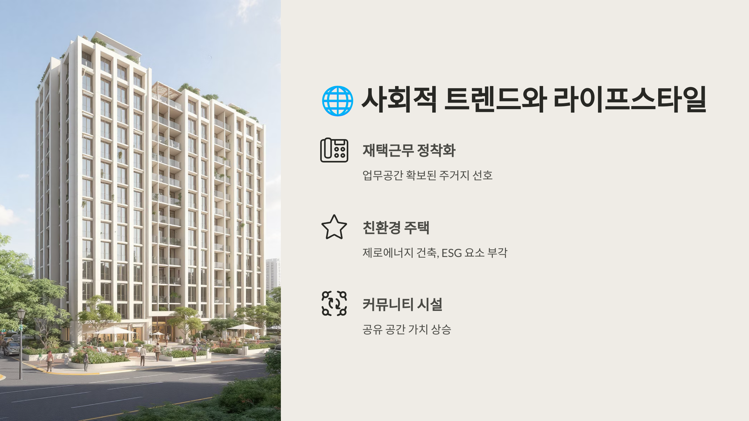 부동산 가치는 사람들의 라이프스타일 변화와 밀접한 관련이 있어요. 코로나19 이후 재택근무가 일상화되면서 주거 공간에 대한 개념이 완전히 바뀌었죠. 이제는 단순히 잠만 자는 공간이 아니라 일하고, 운동하고, 취미 생활을 하는 복합 공간이 되었어요. 🏠