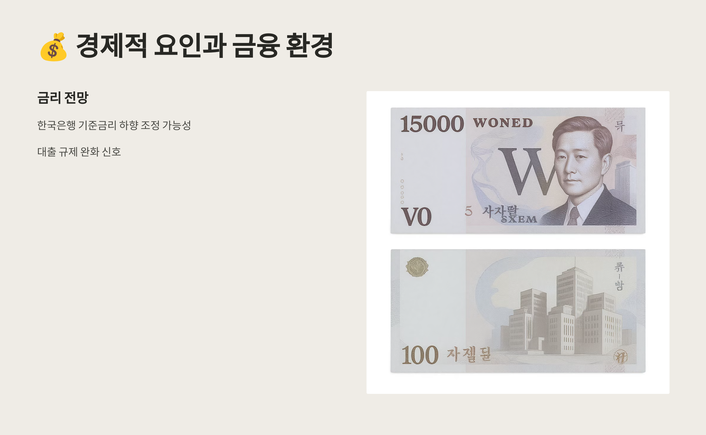 부동산 가치는 경제 상황과 떼려야 뗄 수 없는 관계예요. 금리, 대출 규제, 세금 정책 등이 복합적으로 작용해서 가격을 결정하죠. 2025년 현재 한국은행 기준금리가 변동성이 큰 시기인데요, 이런 때일수록 금융 환경을 잘 읽는 것이 중요해요. 💸
