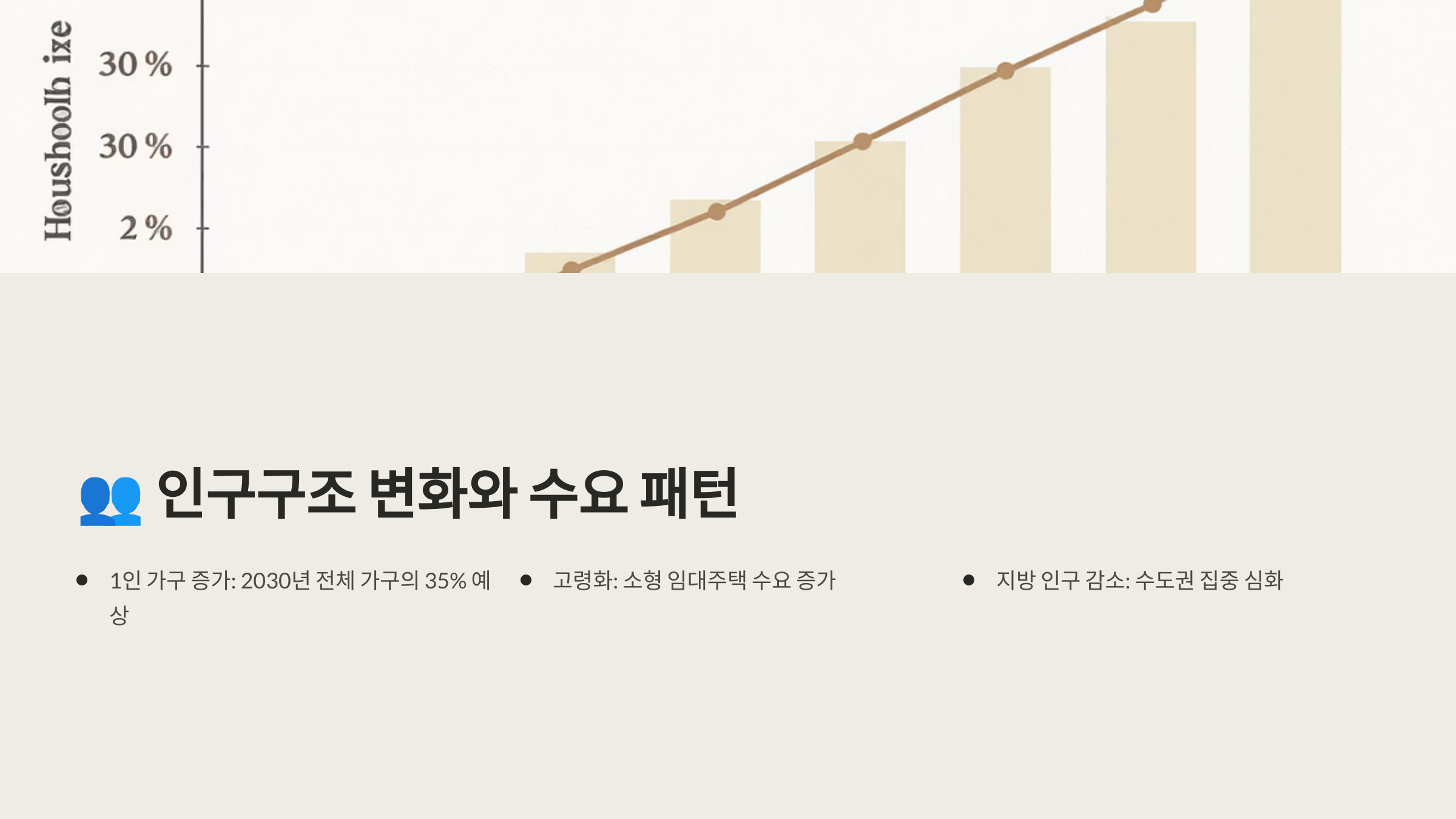 1인 가구 증가도 부동산 시장의 큰 변화를 가져왔어요. 2025년 기준 전체 가구의 35%가 1인 가구인데요, 이들은 소형 평수에 편의시설이 잘 갖춰진 곳을 선호해요. 원룸, 투룸 오피스텔이나 도시형 생활주택의 수요가 꾸준한 이유죠. 역세권 소형 아파트도 투자 매력이 높아요. 🏢