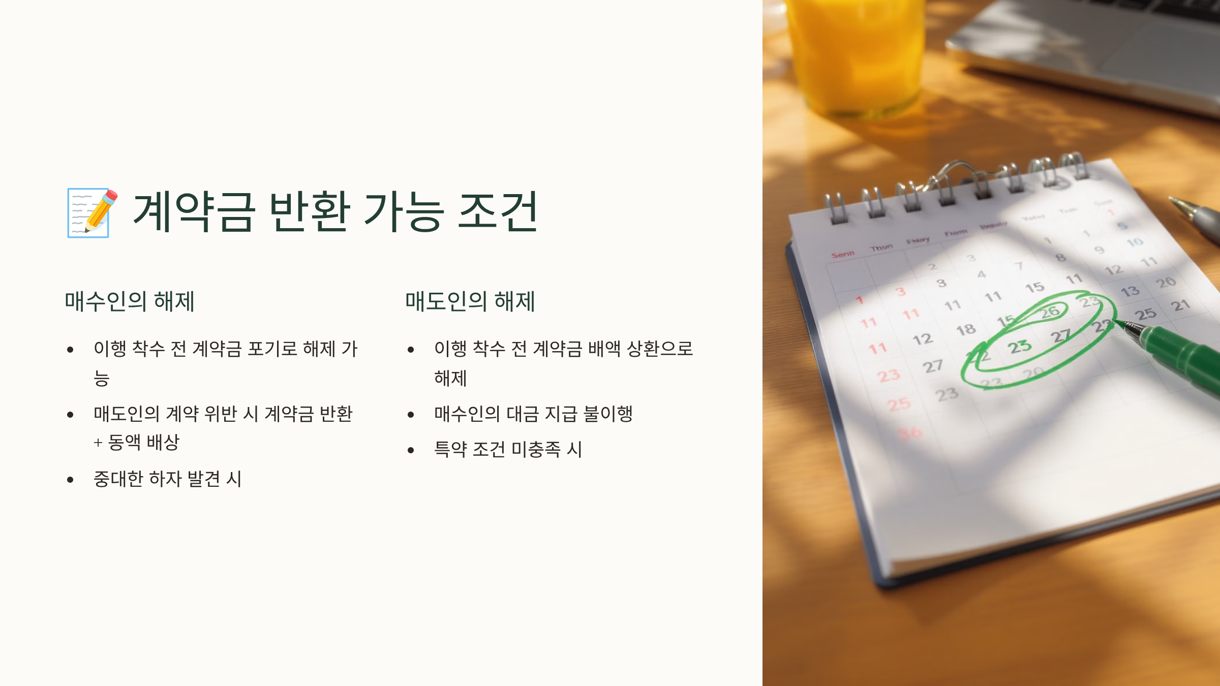 ✅ 계약금 반환 사유별 체크리스트