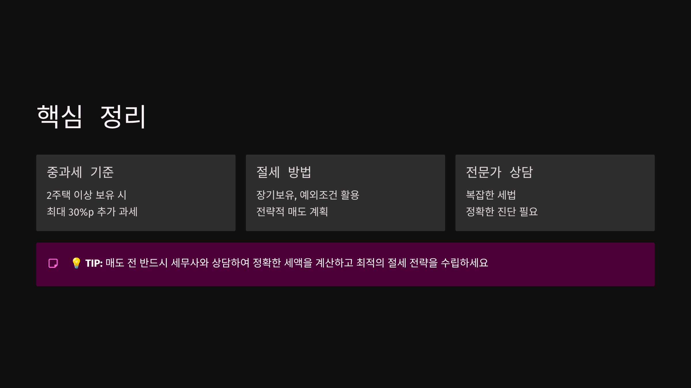 중과세 제도는 부동산 시장 안정화를 위해 도입된 정책이에요. 투기 목적의 부동산 거래를 억제하고 실수요자를 보호하기 위한 장치인데요. 하지만 실제로 적용받게 되면 세금 부담이 상당히 커지기 때문에 미리 정확한 기준을 파악하고 대비하는 것이 중요해요.