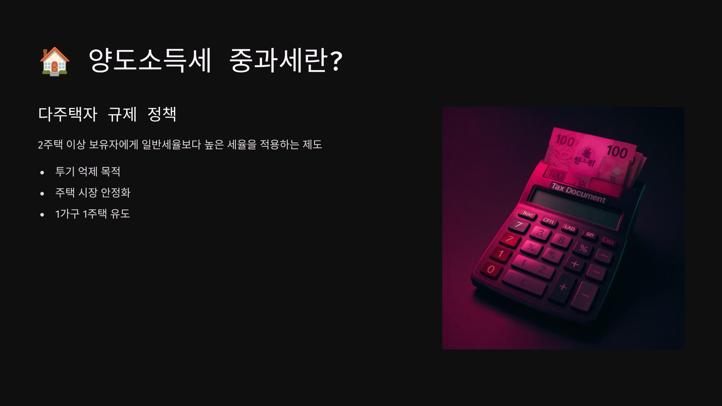 부동산 양도소득세 중과세는 2025년 현재 많은 부동산 투자자들이 꼭 알아야 할 핵심 세금 제도예요. 특히 다주택자나 조정대상지역 내 부동산을 보유하신 분들은 일반 양도소득세보다 훨씬 높은 세율이 적용될 수 있어요. 오늘은 복잡해 보이는 중과세 기준을 쉽고 명확하게 정리해 드릴게요.