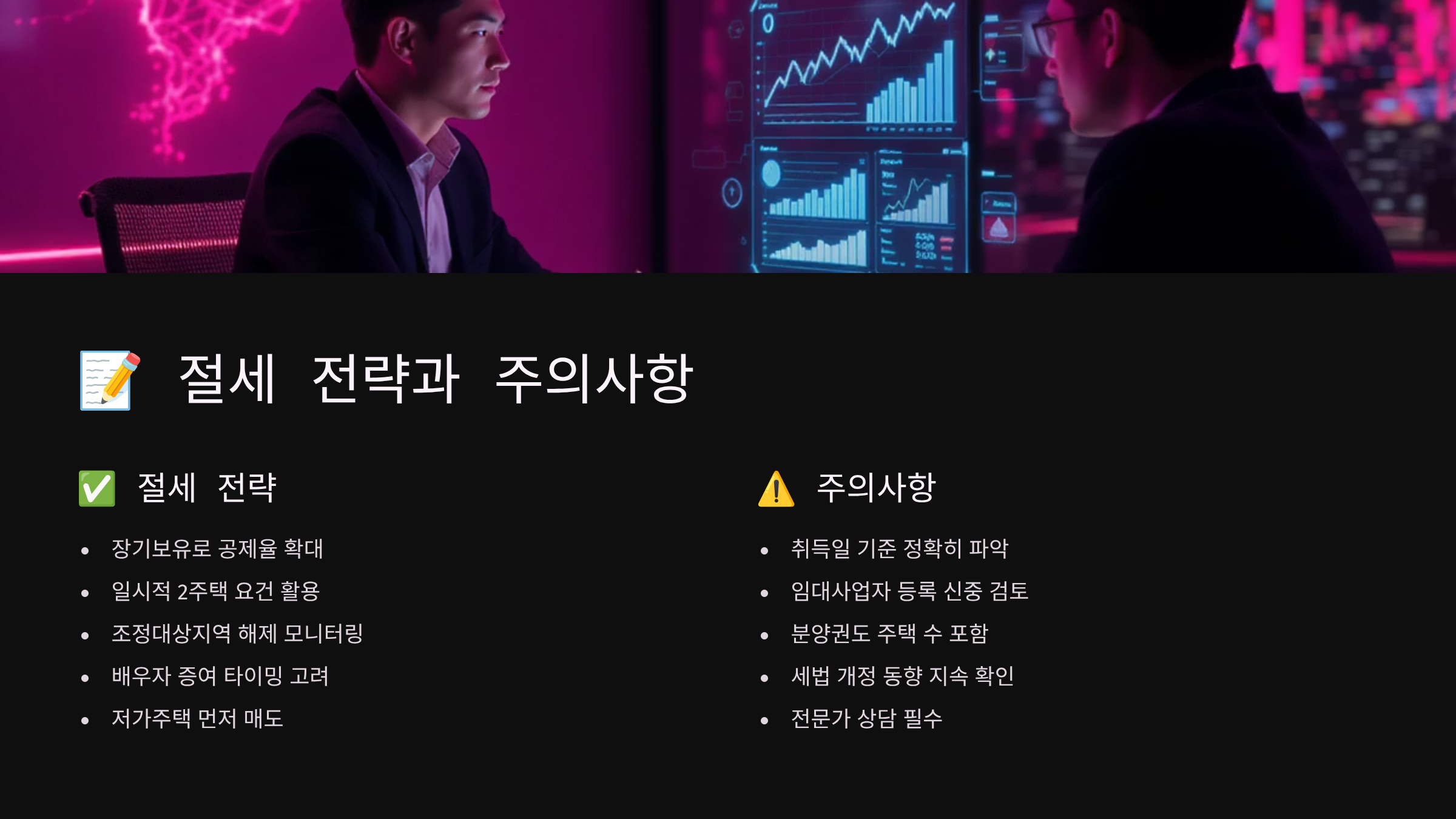 매매 시기 조절도 중요해요. 조정대상지역은 수시로 변경되니까, 해제가 예상되는 지역이라면 기다려볼 수 있어요. 2022년처럼 대규모 해제가 있을 수도 있거든요. 반대로 지정이 예상되는 지역은 서둘러 처분하는 게 나을 수 있어요. 부동산 시장 동향을 꾸준히 체크하세요.