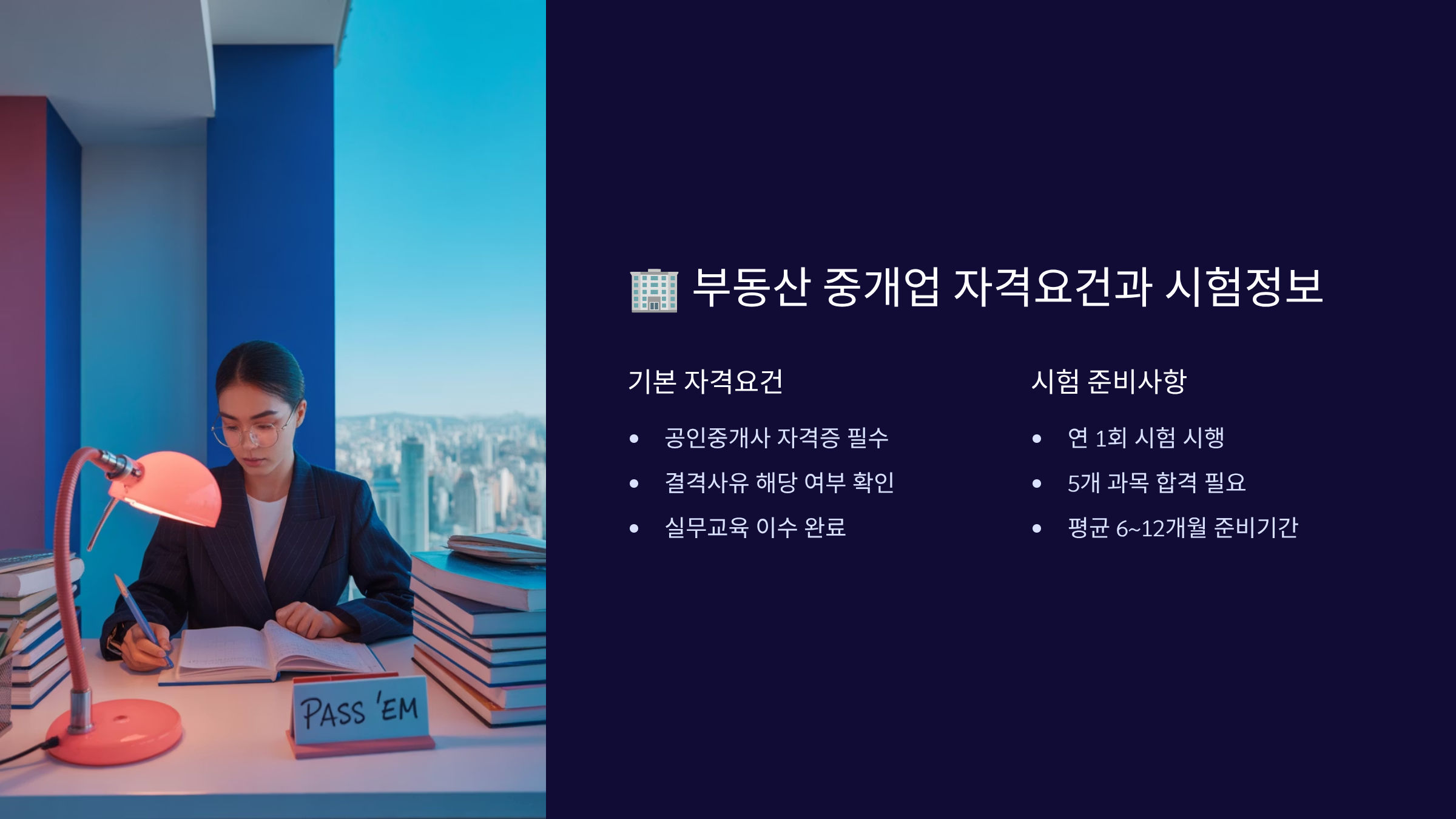 자격 요건 중 결격사유도 확인해야 해요. 미성년자, 피성년후견인, 파산선고를 받고 복권되지 않은 자, 금고 이상의 실형을 선고받고 집행이 끝나거나 면제된 날부터 3년이 지나지 않은 자 등은 중개업 등록이 불가능해요. 또한 중개업법 위반으로 자격이 취소된 경우 3년간 재등록이 제한돼요. 이런 결격사유가 없는지 미리 확인하고 준비를 시작하는 게 중요하답니다.