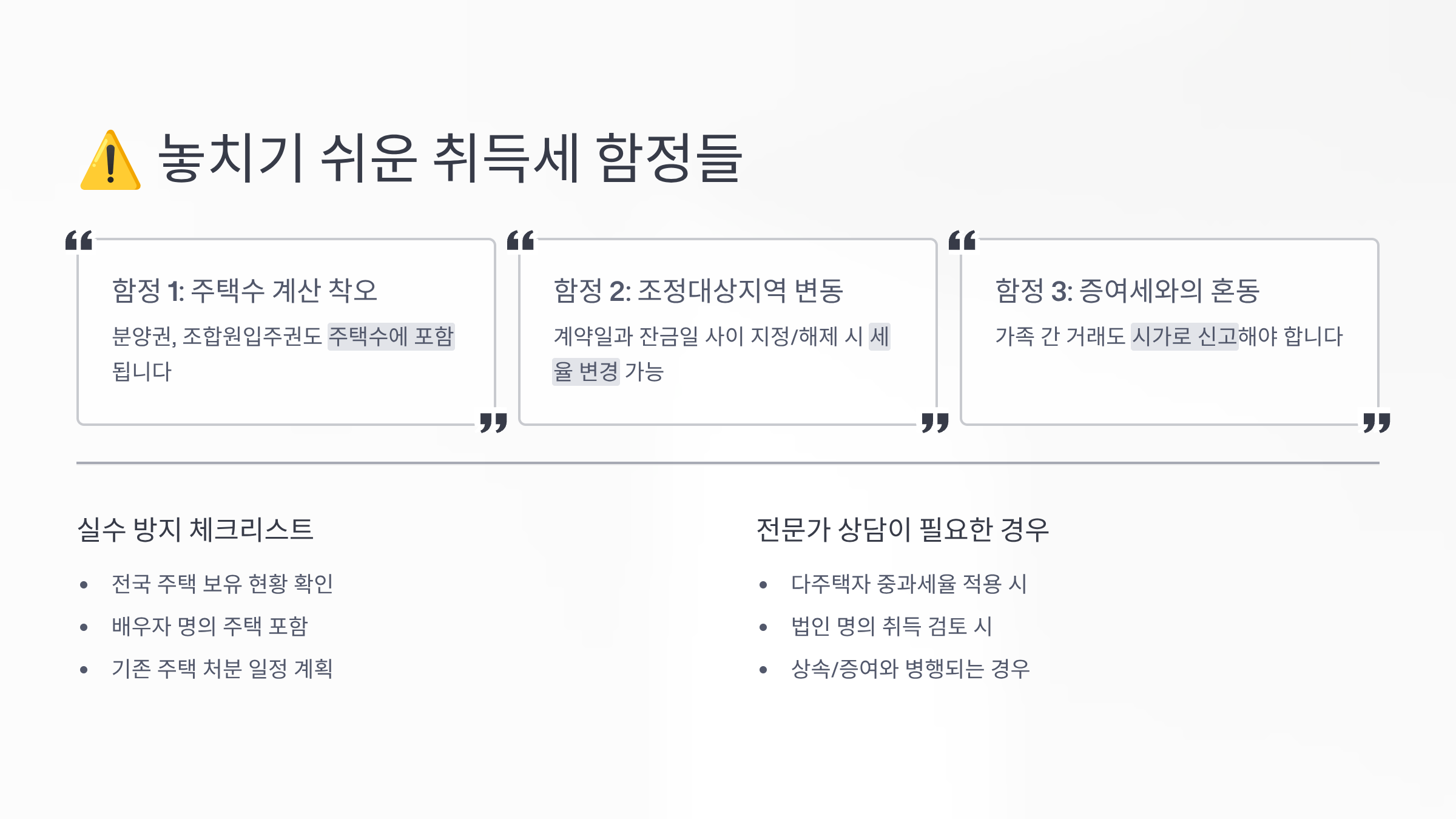 ⚠️ 놓치기 쉬운 취득세 함정들