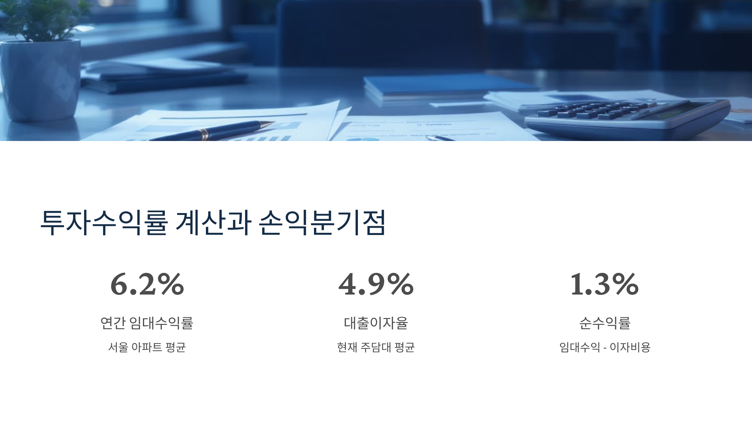 부동산 투자수익률을 정확히 계산하려면 금리를 핵심 변수로 고려해야 해요. 총투자수익률(ROI)은 (연간 임대수익 + 자본이득 - 대출이자 - 제세공과금) ÷ 초기 투자금 × 100으로 계산하는데, 여기서 대출이자가 차지하는 비중이 상당히 커요. 예를 들어 10억 원 아파트를 5억 원 대출받아 구매했을 때, 금리가 4%라면 연간 이자가 2천만 원이 되어 월세 200만 원을 받아도 실질 수익은 크게 줄어들게 돼요.