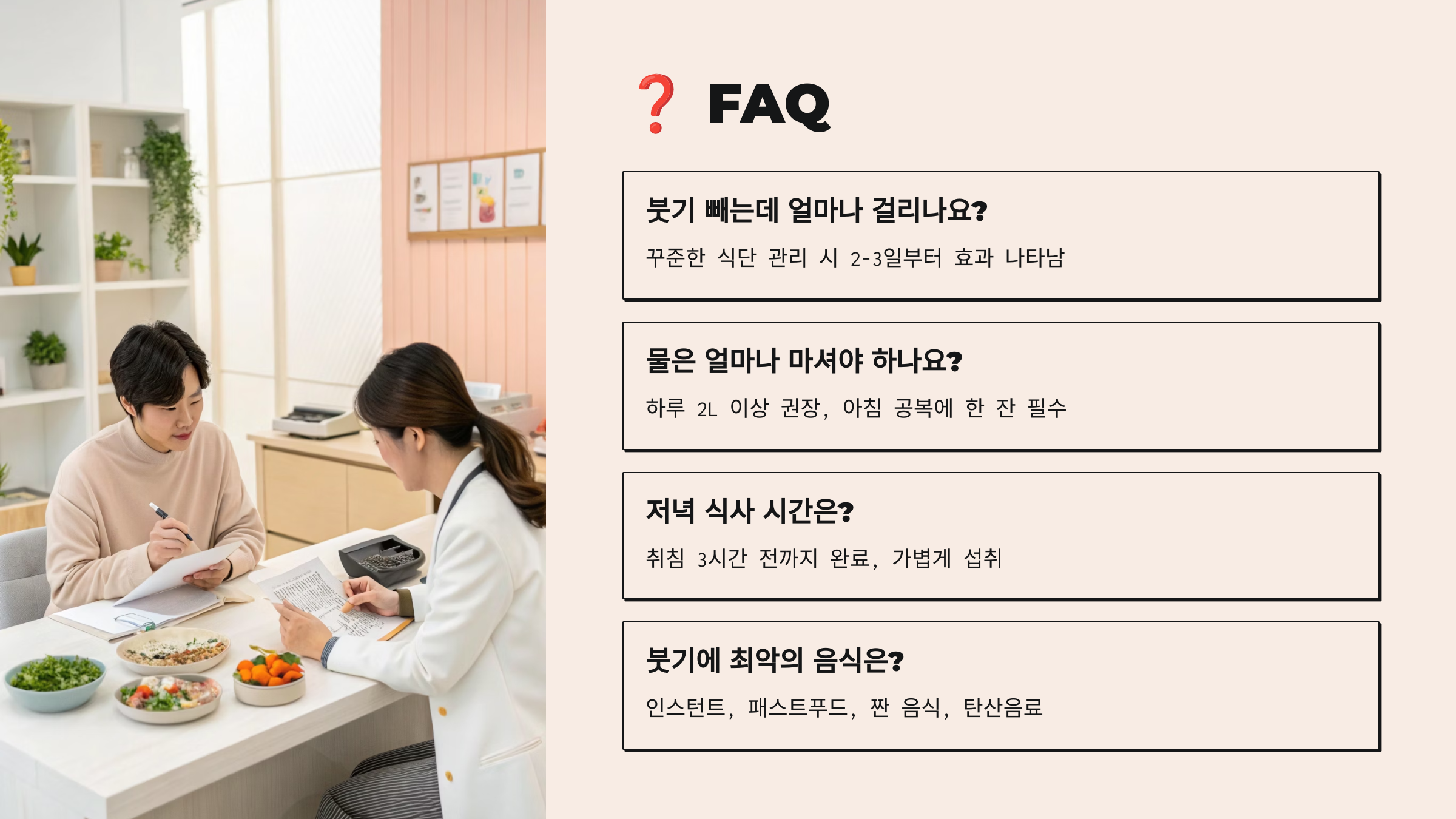 Q1. 부기 빼는 식단을 시작하면 언제부터 효과를 볼 수 있나요?