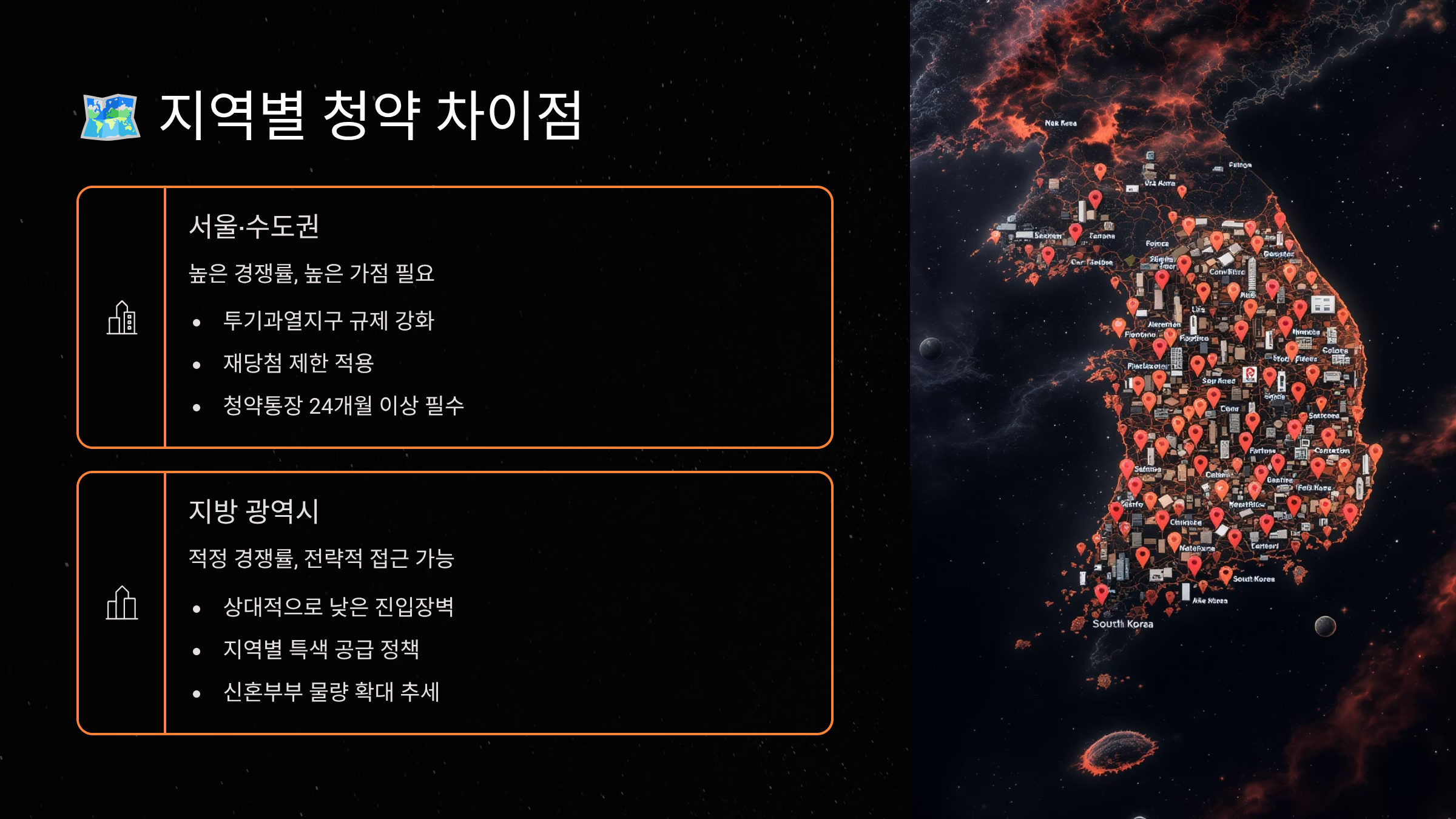지역별 청약 전략도 달라야 해요. 서울은 가점이 부족하다면 외곽 지역이나 소형 평수를 노려보세요. 노원, 도봉, 강북 지역은 상대적으로 경쟁률이 낮아요. 경기도는 GTX 역세권이나 신도시를 주목하면 좋아요. 김포, 하남, 남양주 등이 개발 호재가 많답니다. 지방은 도심 접근성과 학군을 중점적으로 봐야 해요.