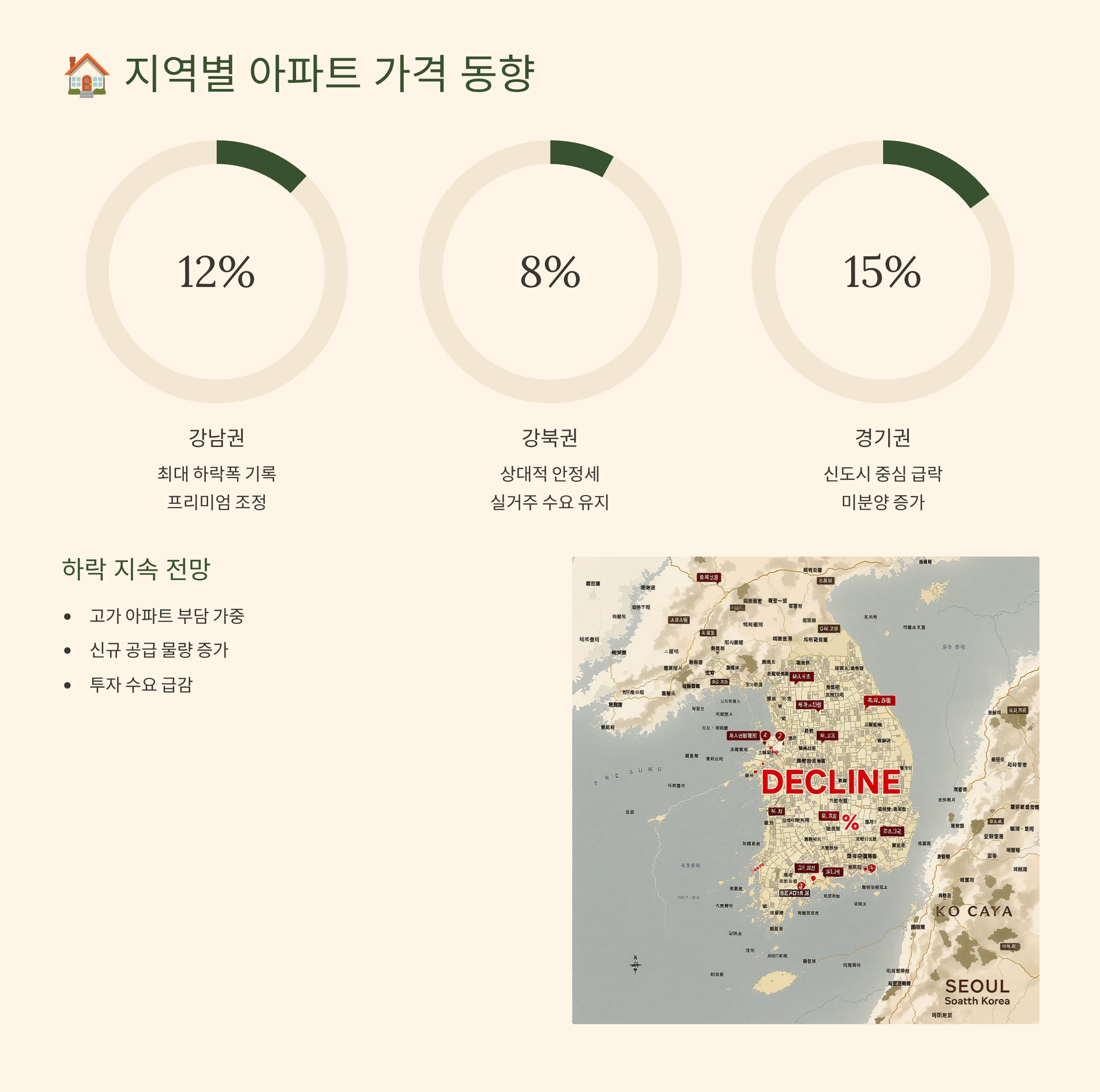 국내 사용자 리뷰를 분석해 보니 최근 3개월간 서울 아파트 매매가격이 평균 2.8% 하락했고, 수도권은 3.5%, 지방은 4.2% 하락했다는 실거래 데이터가 나타났어요. 특히 신축 아파트보다 구축 아파트의 하락폭이 더 크게 나타나고 있답니다. 이런 시장 상황에서 현명한 투자 전략을 세우는 것이 중요해요.