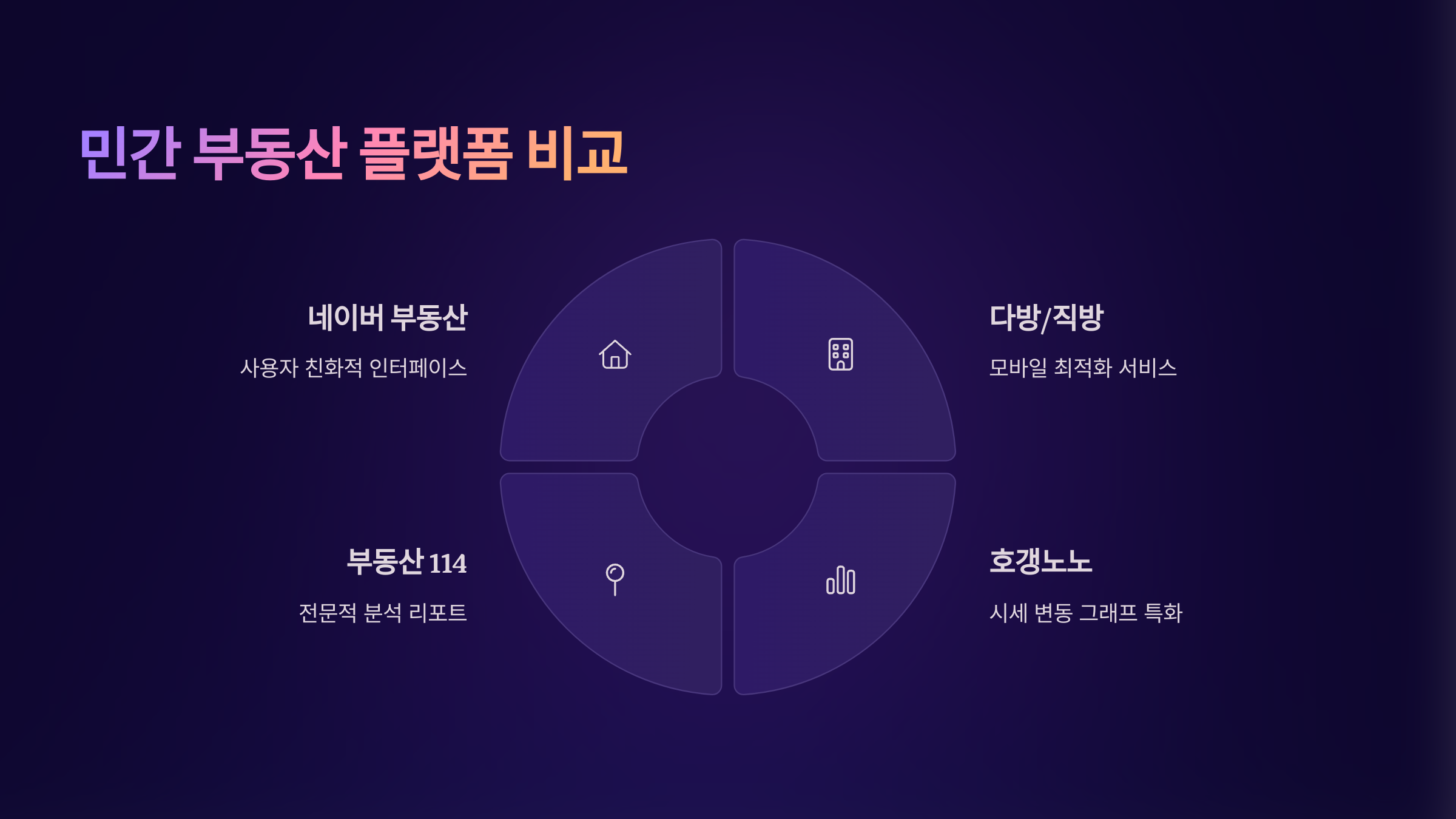 민간 플랫폼들의 공통적인 장점은 사용자 경험을 중시한다는 거예요. 지도 기반 검색, 필터링 기능, 관심 매물 저장, 가격 변동 알림 등 다양한 편의 기능을 제공해요. 또한 커뮤니티 기능을 통해 실거주자들의 생생한 정보를 얻을 수 있고, 부동산 전문가들의 시장분석 리포트도 읽을 수 있어요.
