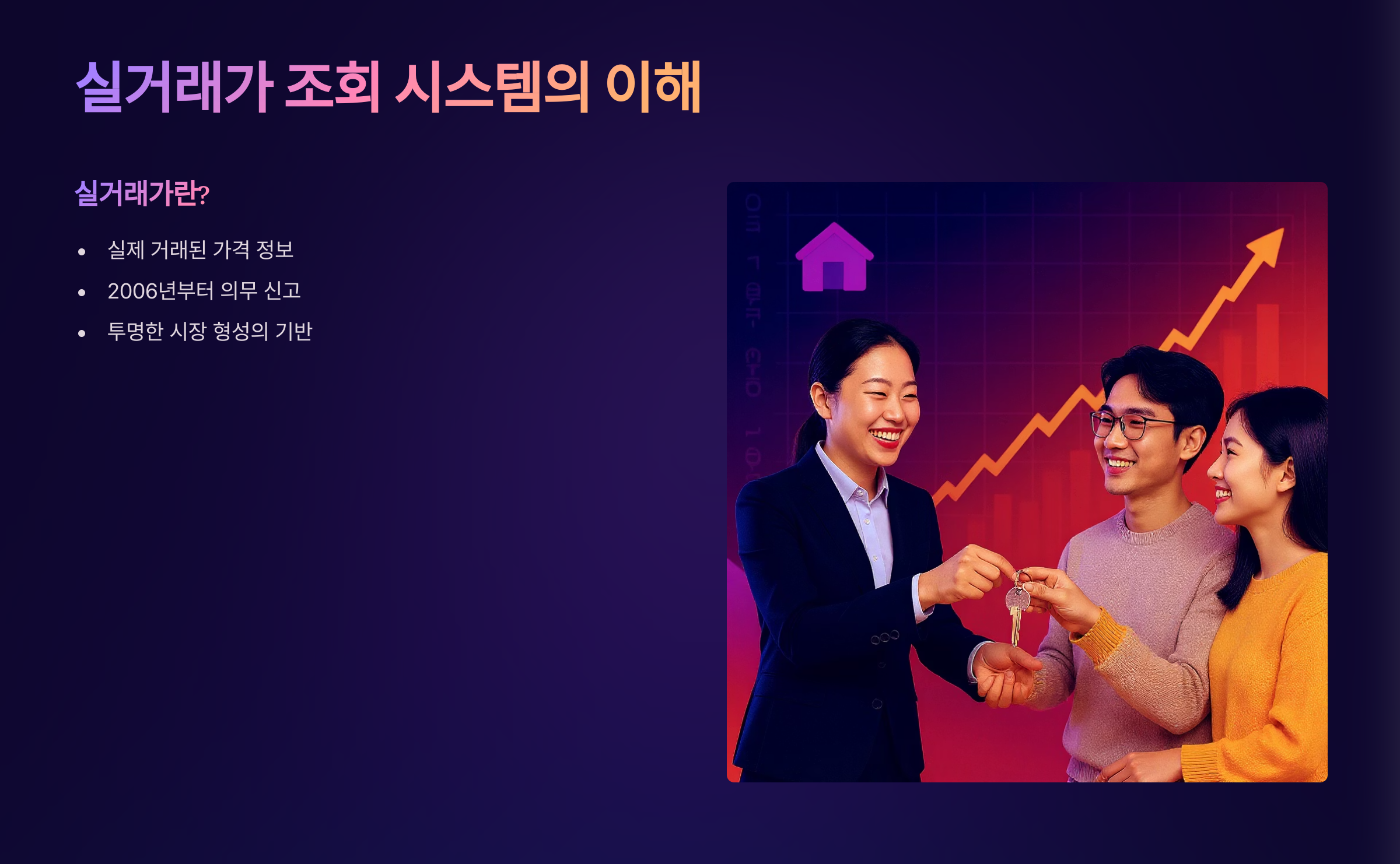 아파트 실거래가 조회 시스템은 2006년부터 시작된 부동산 거래신고제도를 기반으로 해요. 부동산을 거래할 때는 계약일로부터 30일 이내에 시군구청에 신고해야 하며, 이렇게 신고된 정보가 데이터베이스화되어 우리가 조회할 수 있는 실거래가 정보가 되는 거예요. 이 시스템은 부동산 시장의 투명성을 높이고 거품을 방지하기 위해 만들어졌답니다.