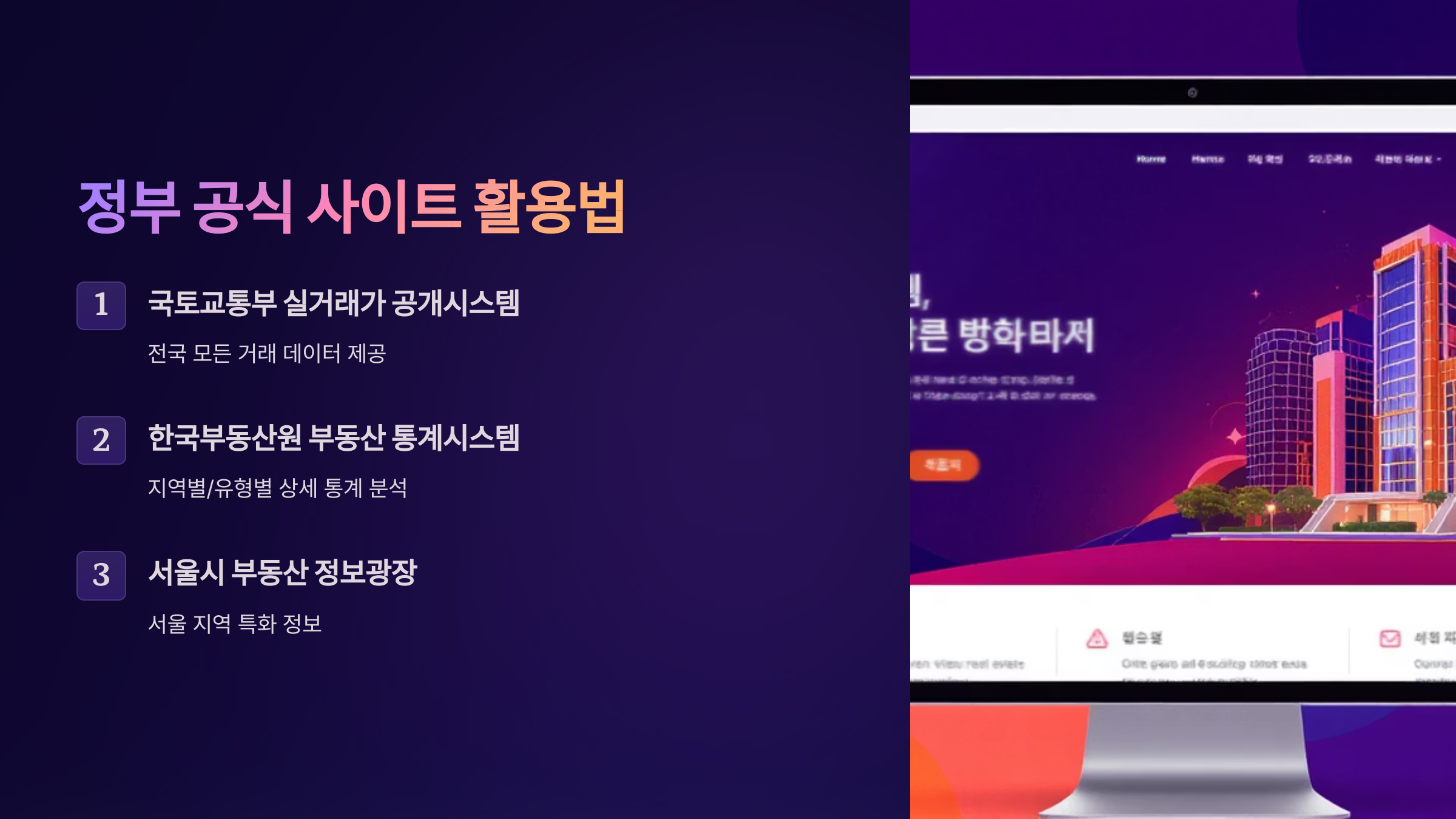 정부 사이트의 가장 큰 장점은 신뢰성이에요. 모든 데이터가 공식적으로 신고된 내용을 바탕으로 하기 때문에, 허위 정보나 과장된 정보가 없어요. 다만 사용자 인터페이스가 다소 불편하고, 추가적인 정보(예: 단지 내 위치, 향, 뷰 등)는 제공하지 않는다는 단점이 있어요. 그래서 많은 사람들이 정부 사이트와 민간 사이트를 함께 활용하고 있답니다.