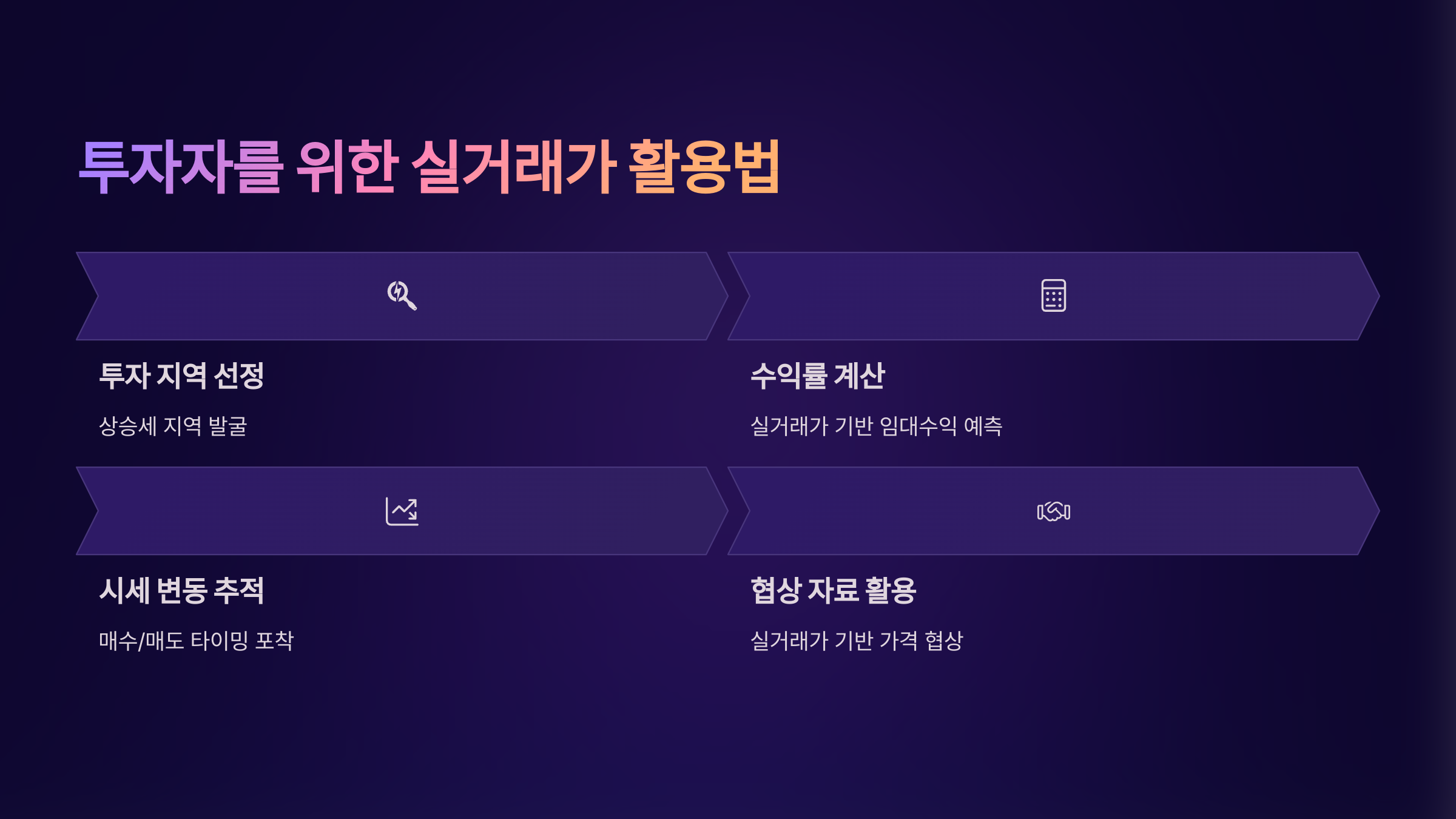부동산 투자자에게 실거래가 정보는 투자 판단의 핵심 자료예요. 단순히 현재 가격을 아는 것을 넘어서, 가격 변동 패턴을 분석하고 미래 가치를 예측하는 데 활용할 수 있어요. 성공적인 부동산 투자를 위해서는 실거래가 데이터를 전략적으로 분석하고 활용하는 능력이 필수적이랍니다.
