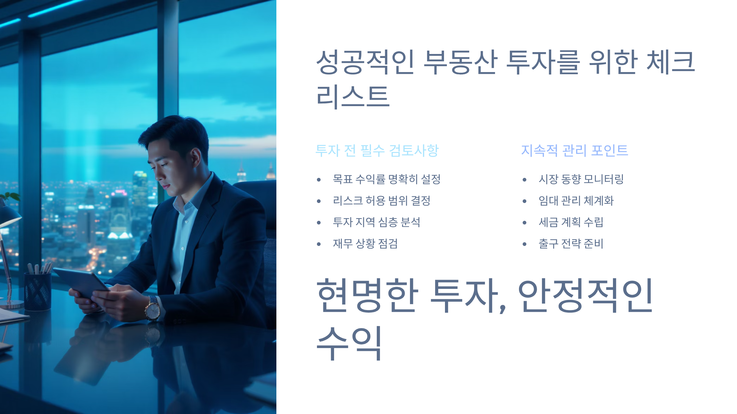 본 콘텐츠는 일반적인 정보 제공을 목적으로 작성되었으며, 특정 투자 권유나 매매 추천을 의미하지 않습니다. 부동산 투자는 시장 상황, 정부 정책, 개인의 재무 상황 등에 따라 결과가 달라질 수 있으며, 원금 손실의 위험이 있습니다. 투자 결정 전 반드시 전문가와 상담하시고, 모든 투자 책임은 투자자 본인에게 있음을 알려드립니다.