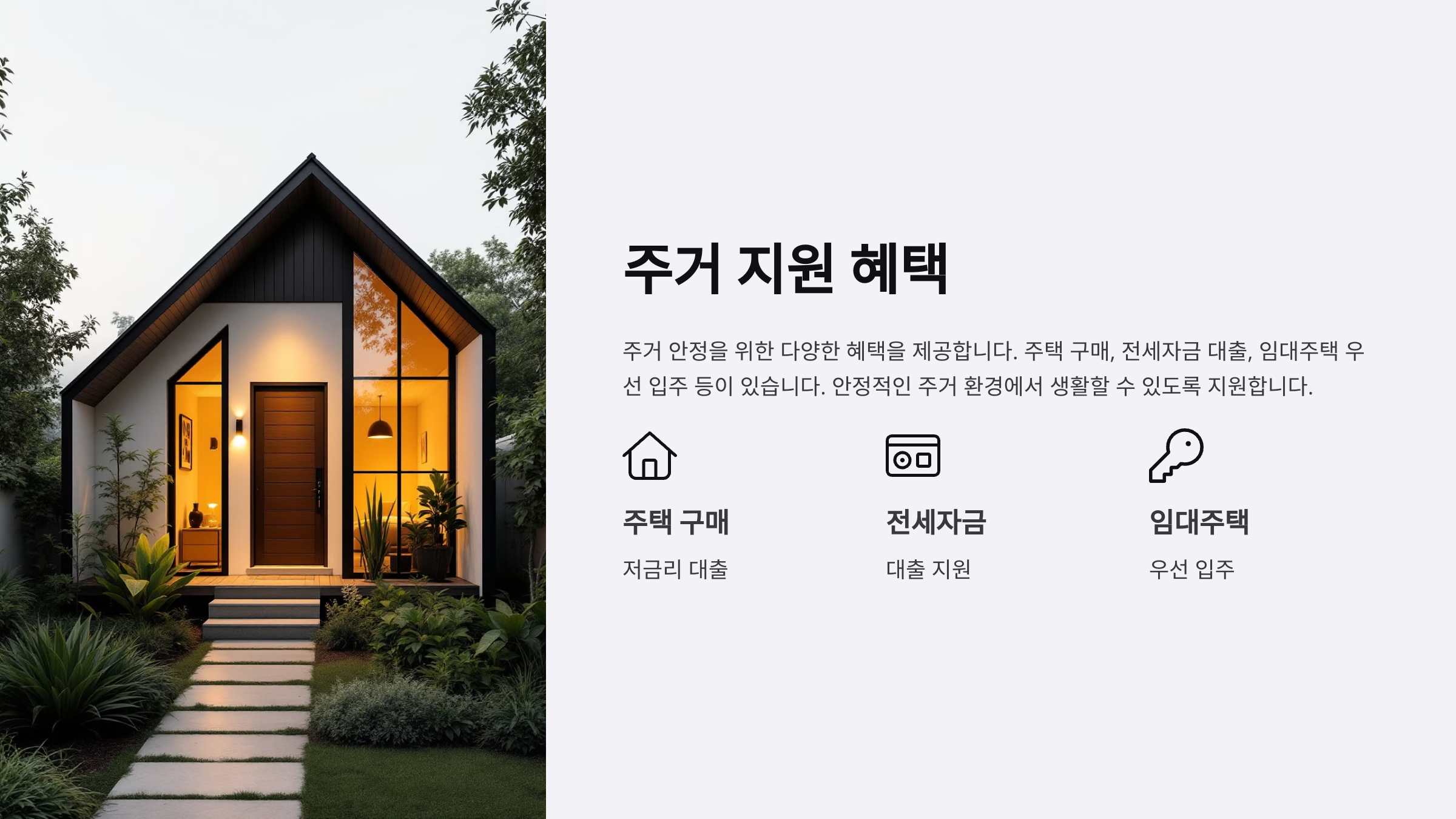 | 공공임대주택 | 저렴한 임대료로 장기 거주 가능 | LH청약센터 신청 |
