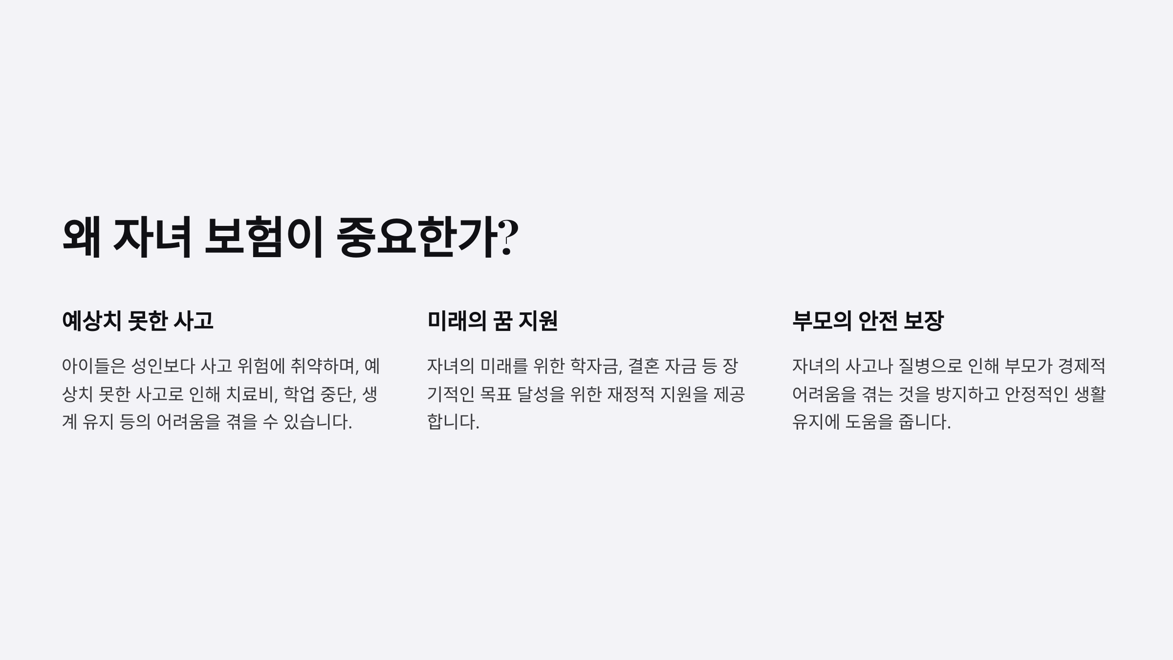자녀의 미래를 위해 부모가 준비해야 할 것 중 하나가 바로 자녀 보험이에요. 예상치 못한 의료비 부담을 덜고, 아이가 성장하면서 필요한 보장을 받을 수 있도록 도와주는 중요한 금융 상품이죠.