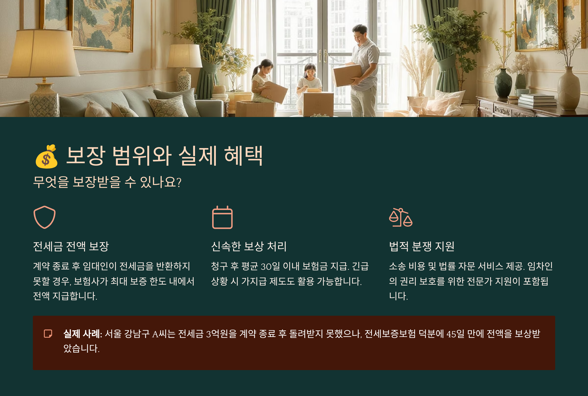 • 저렴한 비용: 연간 전세금의 0.1~0.2% 수준의 합리적인 보험료