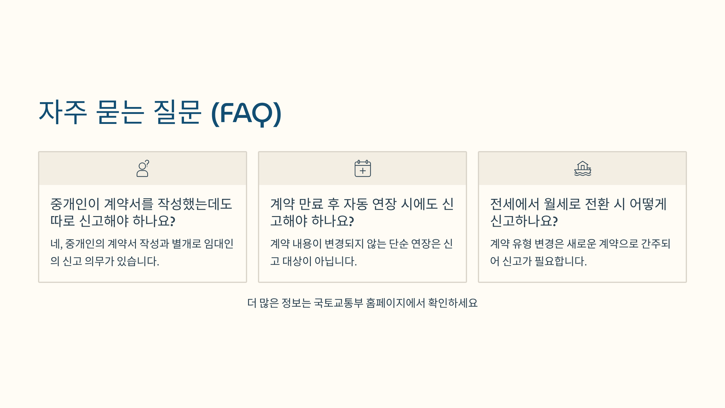 A15. 묵시적 갱신은 별도 신고 의무가 없어요. 하지만 조건이 변경되면 신고해야 합니다.