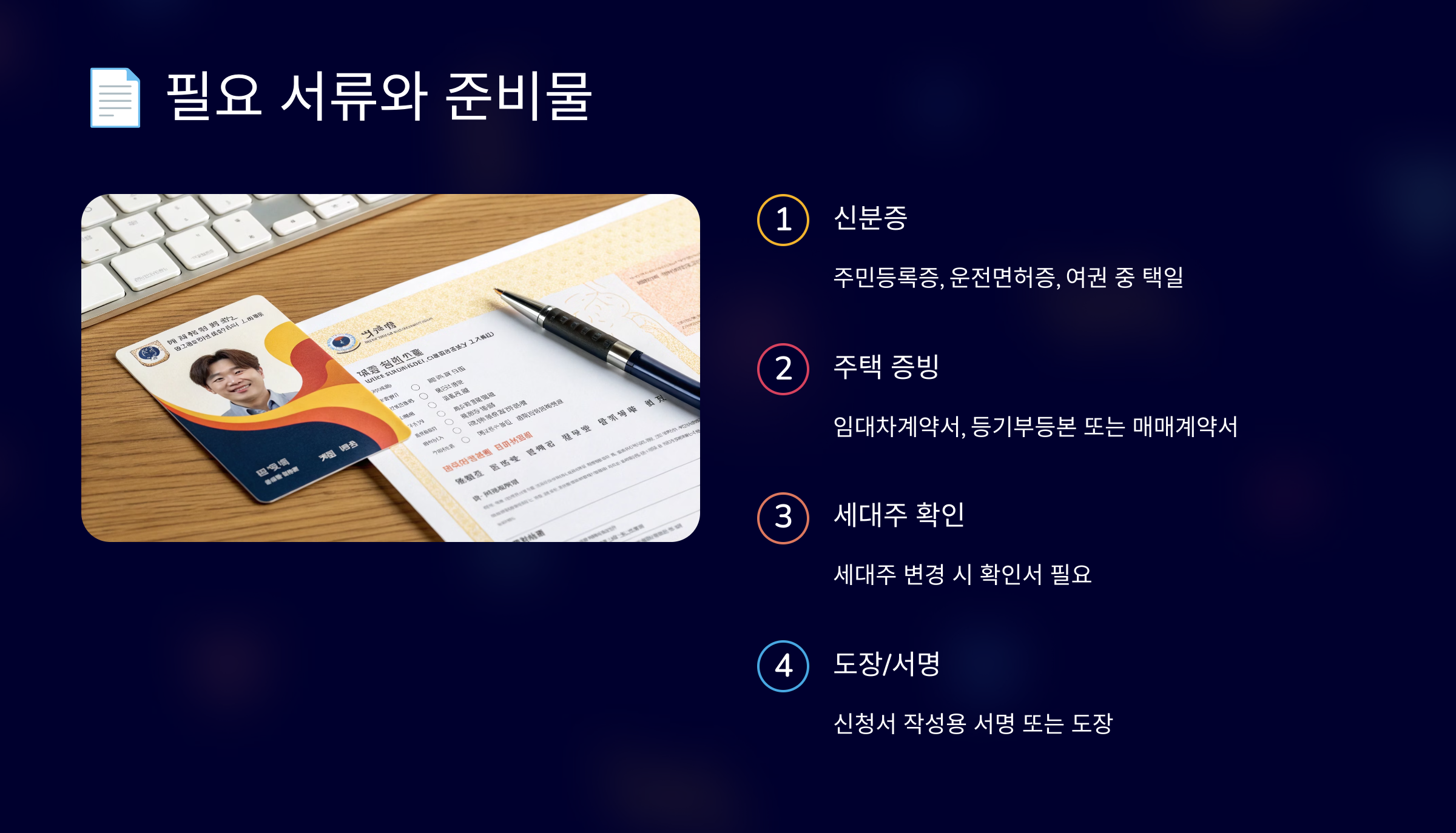 임대주택에 거주하는 경우라면 임대차계약서 사본을 지참하는 것이 좋아요. 비록 법적으로 반드시 필요한 서류는 아니지만, 거주 사실을 명확히 증명할 수 있어서 신고 과정이 더 원활해져요. 특히 월세나 전세로 거주하는 경우 집주인의 동의서나 확인서를 미리 받아두면 나중에 문제가 생겼을 때 도움이 될 수 있답니다.