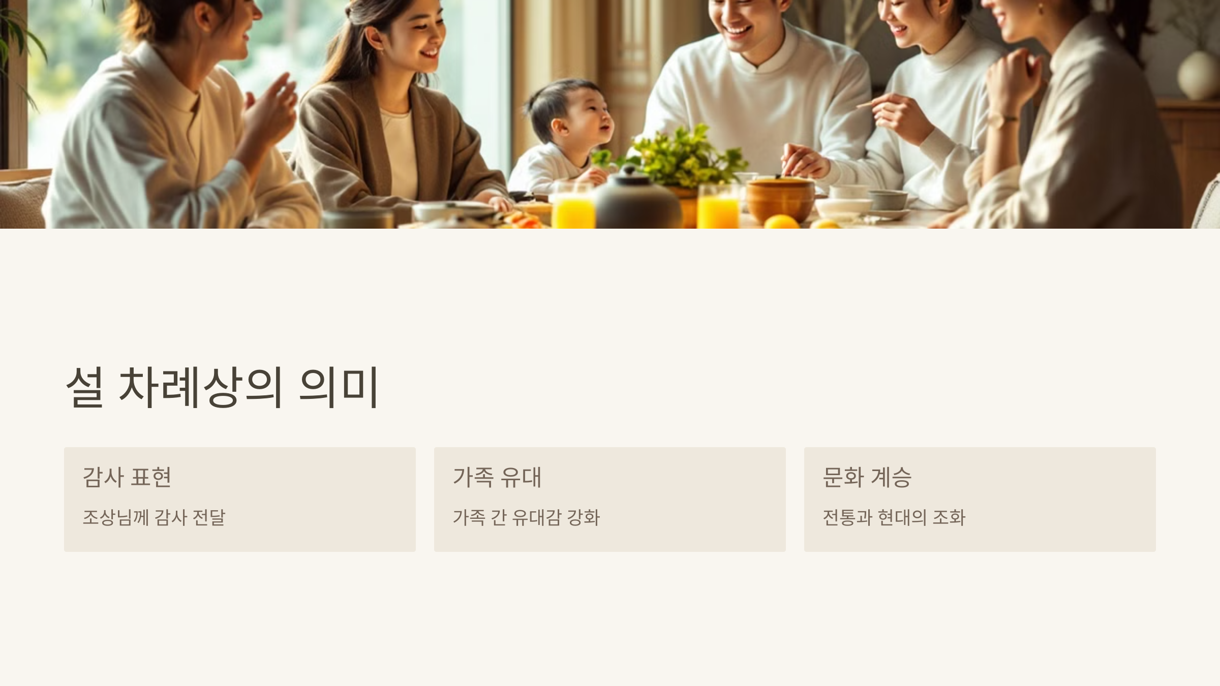 설 차례상 차리기는 단순히 음식을 준비하는 것을 넘어, 조상님께 감사의 마음을 전하고 가족 간의 유대감을 강화하는 중요한 전통입니다. 각 가정과 지역의 고유한 방식이 존재하지만, 기본적인 원칙을 이해하고 존중하는 것이 중요합니다. 이러한 전통을 통해 우리는 조상님께 대한 존경을 표현하고, 가족과 함께 따뜻한 명절을 보낼 수 있습니다. 차례상을 준비하며 전통과 현대의 조화를 이루는 방법을 찾는 것은 우리에게 주어진 과제이기도 합니다. 이를 통해 우리는 과거와 현재를 연결하고, 미래를 향한 희망을 품을 수 있습니다. 차례상 차리기는 단순한 의례가 아닌, 우리의 문화와 역사를 잇는 중요한 연결고리입니다. 이번 설날에는 이러한 전통을 존중하면서도, 가족과 함께 따뜻하고 의미 있는 시간들을 보내셨음 합니다.