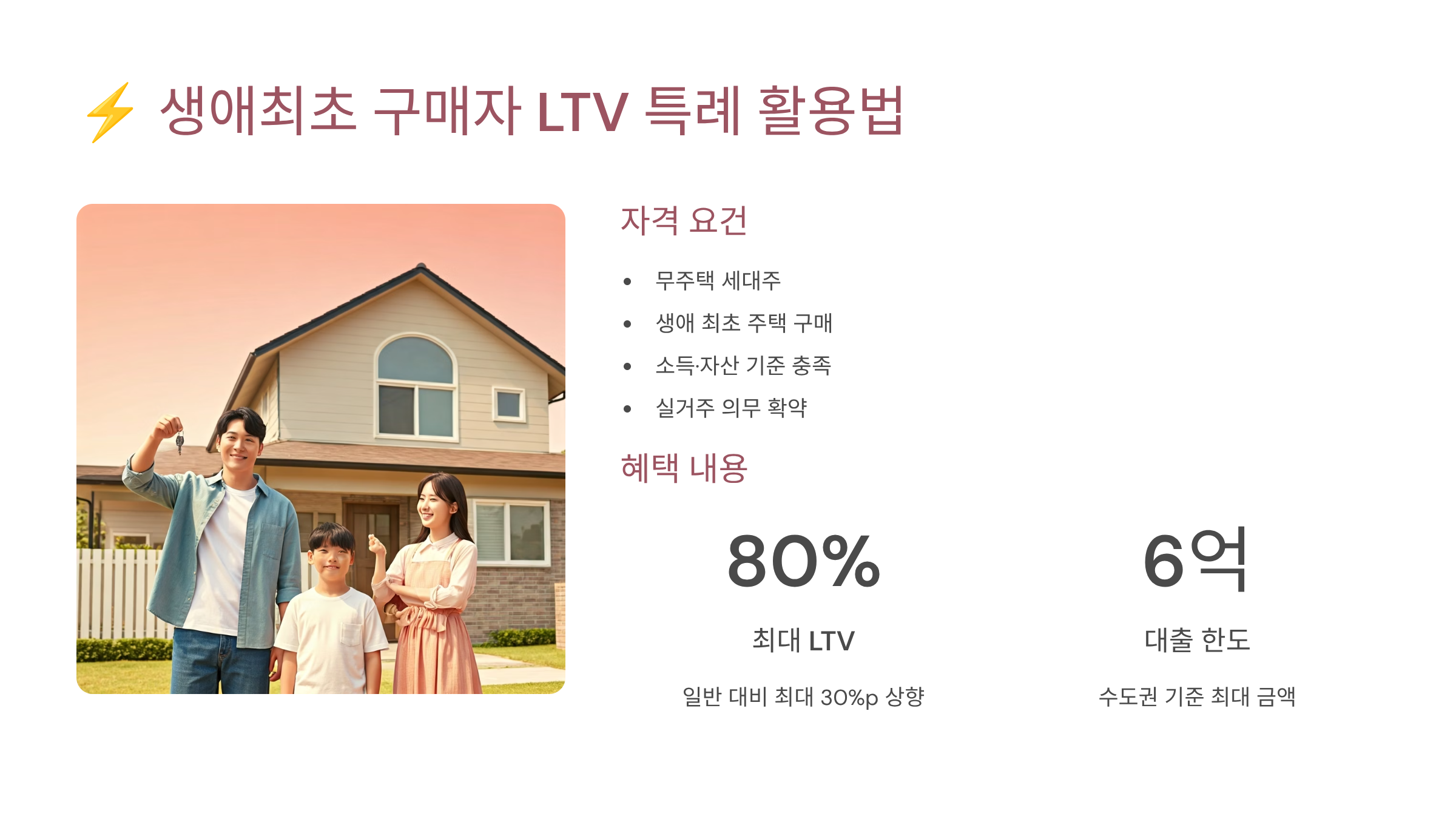 | 생애최초 | 70% | 80% | 10%p 상향 |
