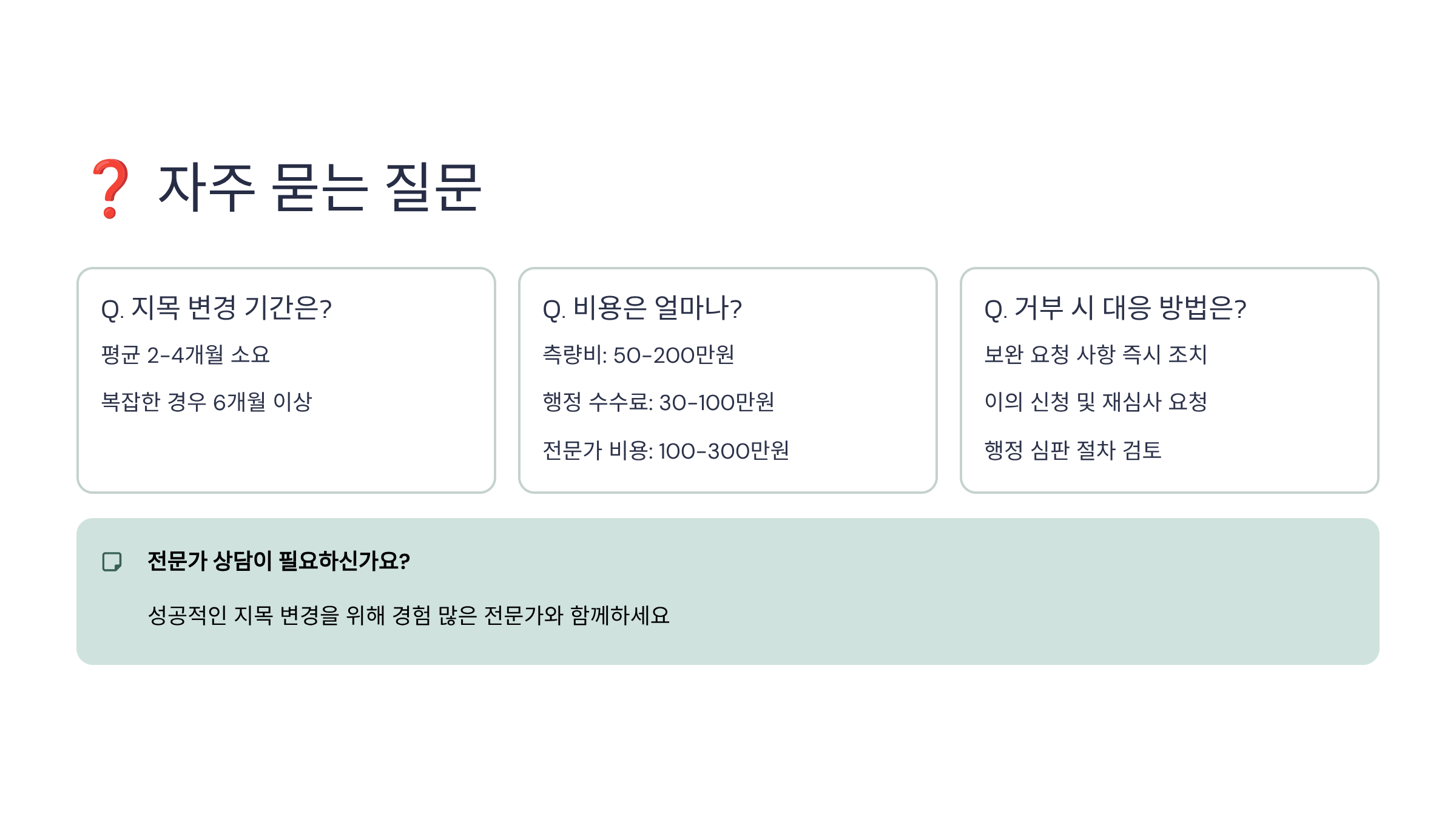 Q29. 지목 변경 성공률을 높이는 핵심 팁은?