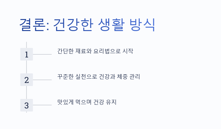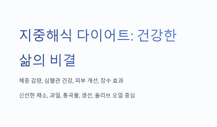 지중해식 다이어트는 단순한 다이어트가 아닌, 평생 유지할 수 있는 건강한 생활 방식입니다. 간단한 재료와 요리법으로 시작해 보세요. 꾸준히 실천한다면 건강과 체중 관리를 동시에 잡을 수 있을 것입니다. 많은 사람들이 지중해식 다이어트를 통해 체중 감량에 성공하고, 피부가 맑아지는 등의 긍정적인 변화를 경험하고 있습니다. 올리브 오일로 만든 샐러드와 생선 요리가 체중 감량에 도움을 주고, 심장 건강을 지킬 수 있다는 점에서 매력적인 식단입니다. 이 글을 통해 지중해식 다이어트의 장점과 성공 비법을 알게 되셨다면, 이제 여러분도 직접 실천해 보세요! 건강한 식단으로 맛있게 먹으며 건강을 지킬 수 있는 방법을 찾아보세요.