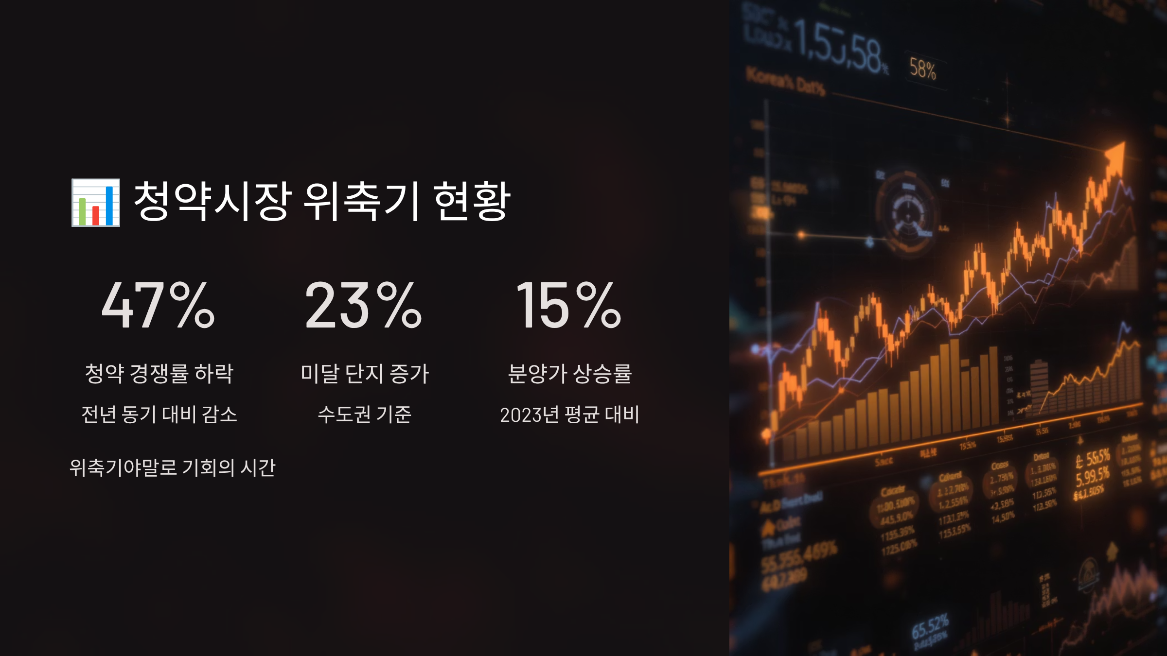 2025년 현재 청약시장이 위축기에 접어들면서 오히려 실수요자들에게는 기회가 될 수 있어요. 과열기와 달리 경쟁률이 낮아지고 가점이 낮은 사람들도 당첨 가능성이 높아졌답니다. 이런 시기를 잘 활용하면 내 집 마련의 꿈을 이룰 수 있어요.