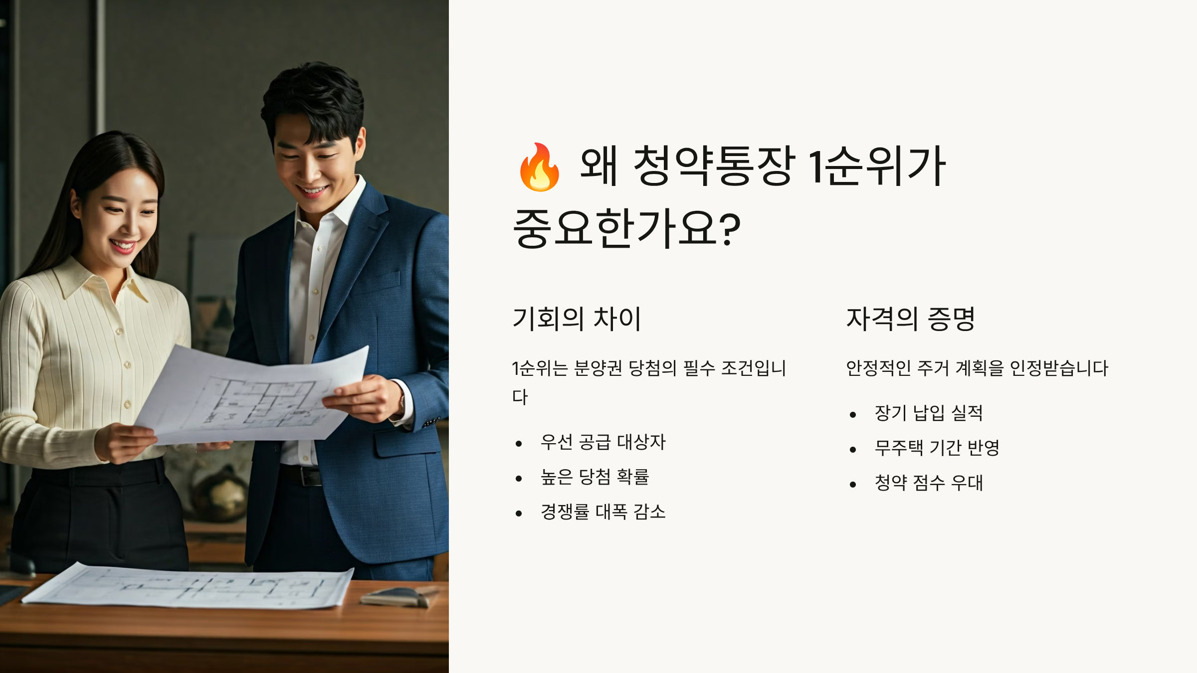 부모님 세대에서는 청약통장으로 아파트 당첨되는 게 흔했어요. 지금은 경쟁이 치열해졌지만 전략적으로 준비하면 충분히 가능해요.