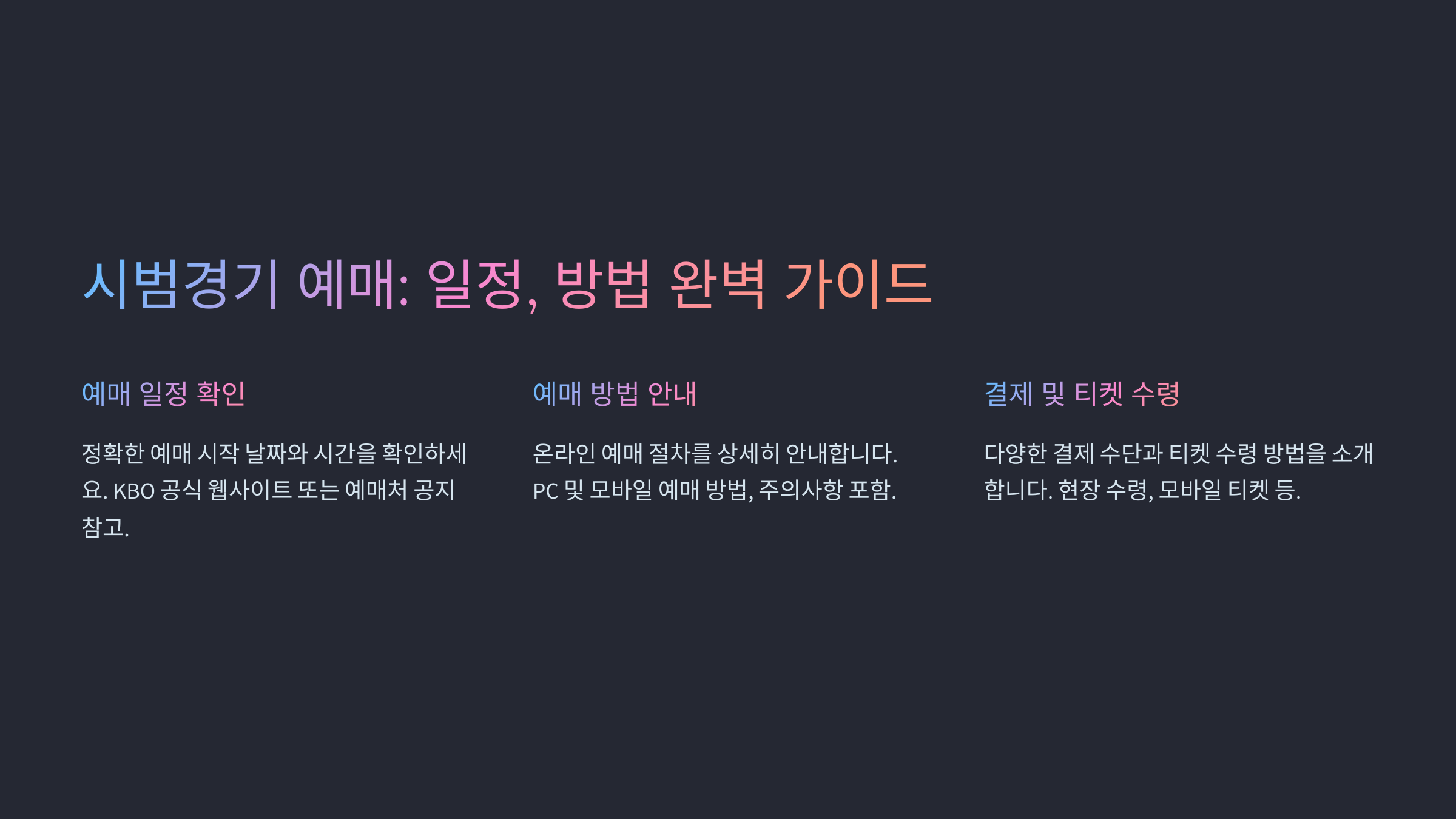 이제 시범경기 예매 일정을 확인했으니 원하는 경기 티켓을 놓치지 않도록 준비하세요.