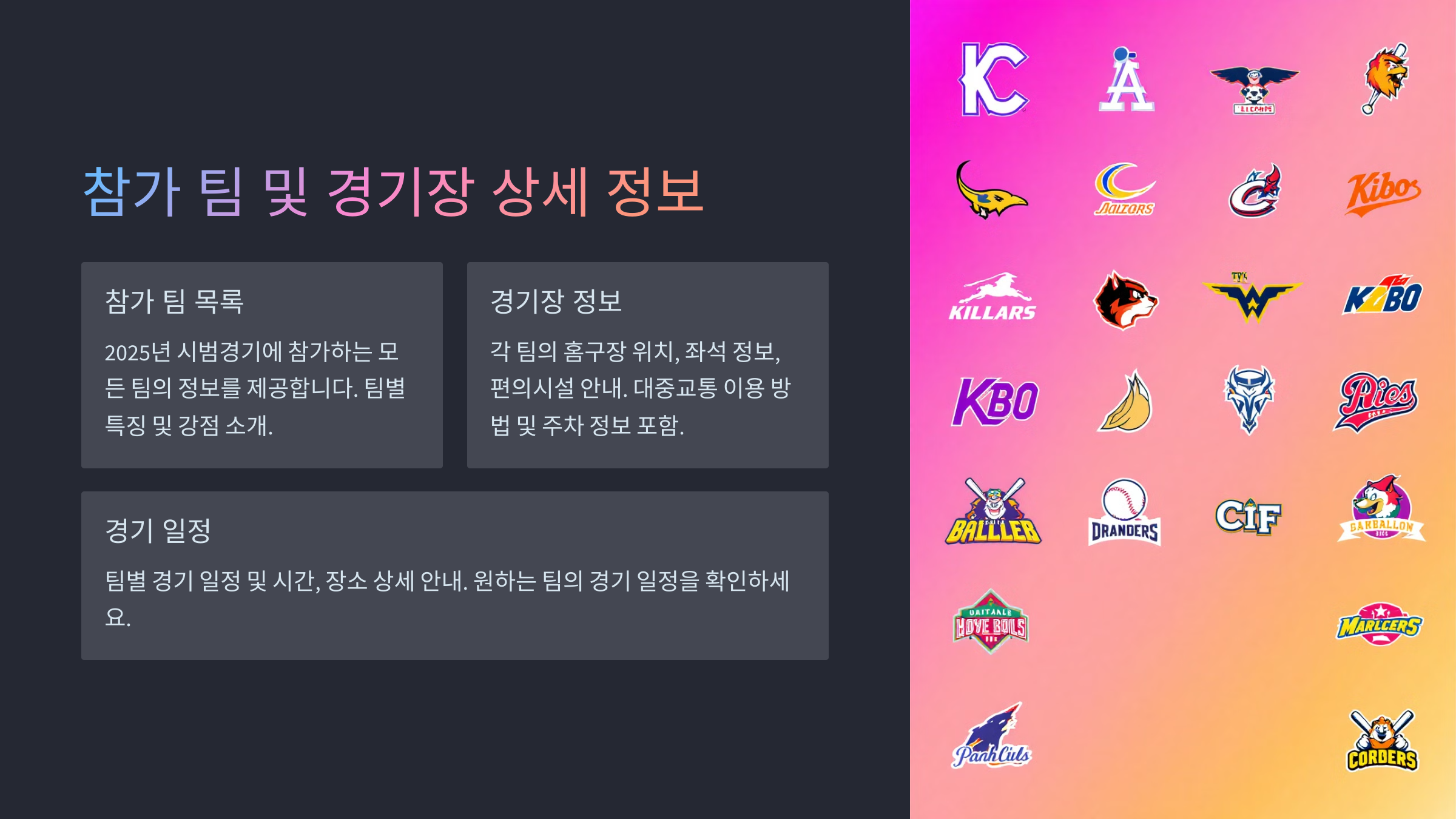참가 팀 및 홈구장 정보
