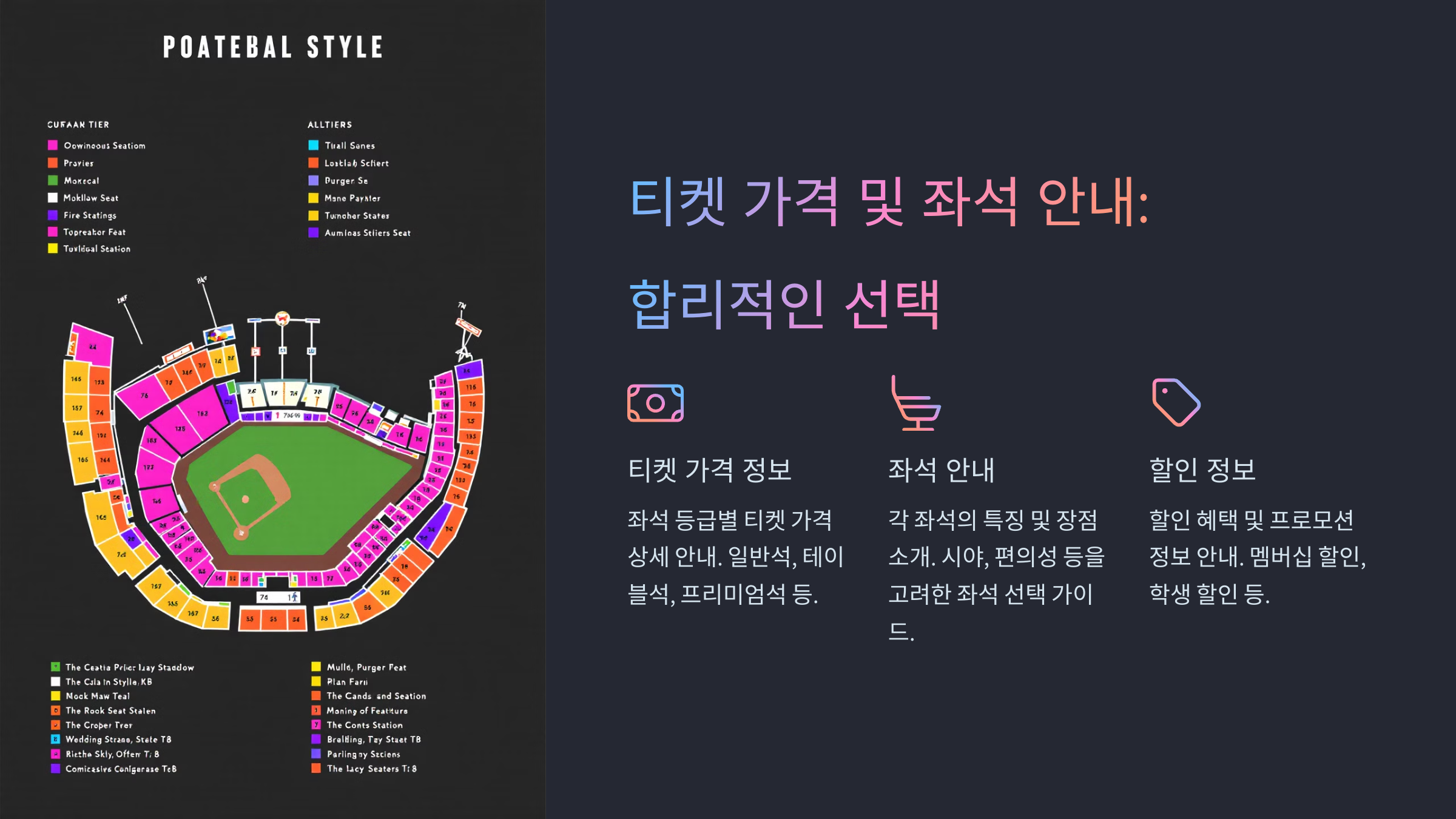 - 일부 구장은 특정 좌석에 대해 패밀리석이나 프리미엄석을 운영할 수도 있어요.