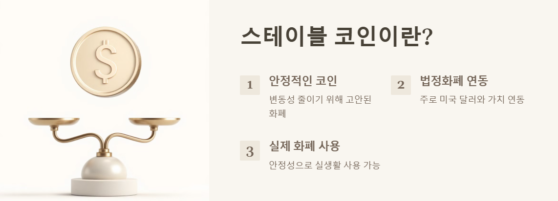 스테이블 코인은 이름 그대로 '안정적인 코인'을 의미합니다. 암호화폐는 일반적으로 수요와 공급에 따라 가치가 결정되며, 그 변동성이 매우 큽니다. 이러한 특성으로 인해 암호화폐는 투자 자산으로는 활발히 거래되지만, 실제 화폐로 사용되기에는 어려움이 많습니다. 스테이블 코인은 이러한 변동성을 줄이기 위해 고안된 화폐로, 주로 미국 달러와 같은 법정화폐에 가치를 연동하여 안정성을 유지합니다.